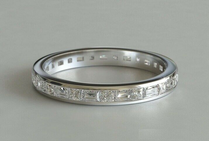 2.1ct Baguette Cut Diamond Wedding Band Channel Set Eternity 14k White Gold Over