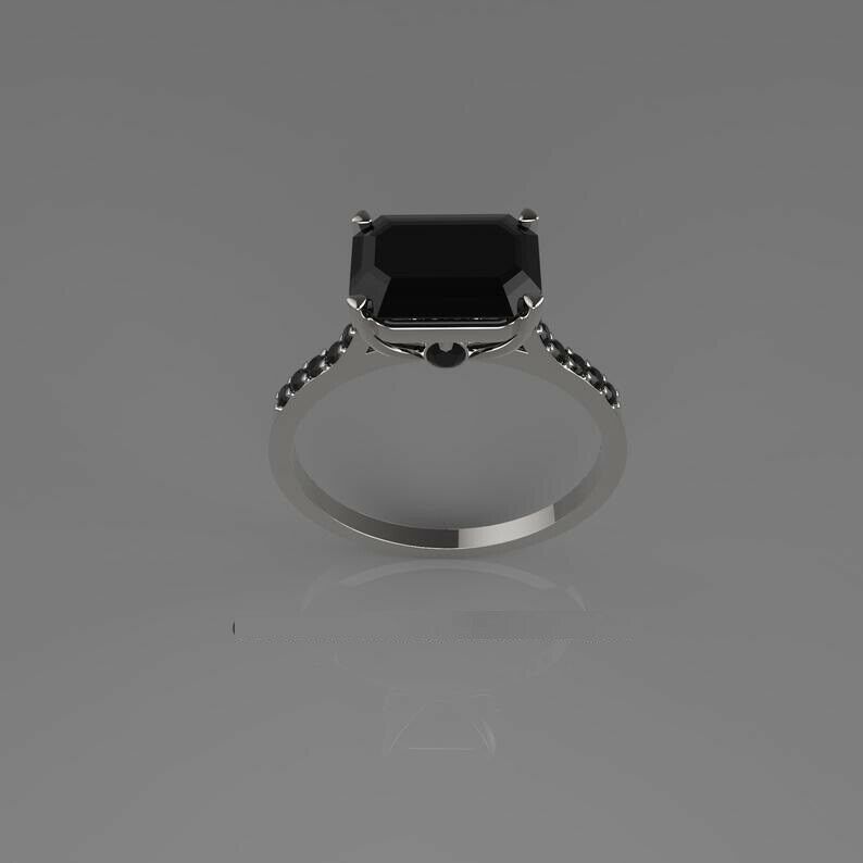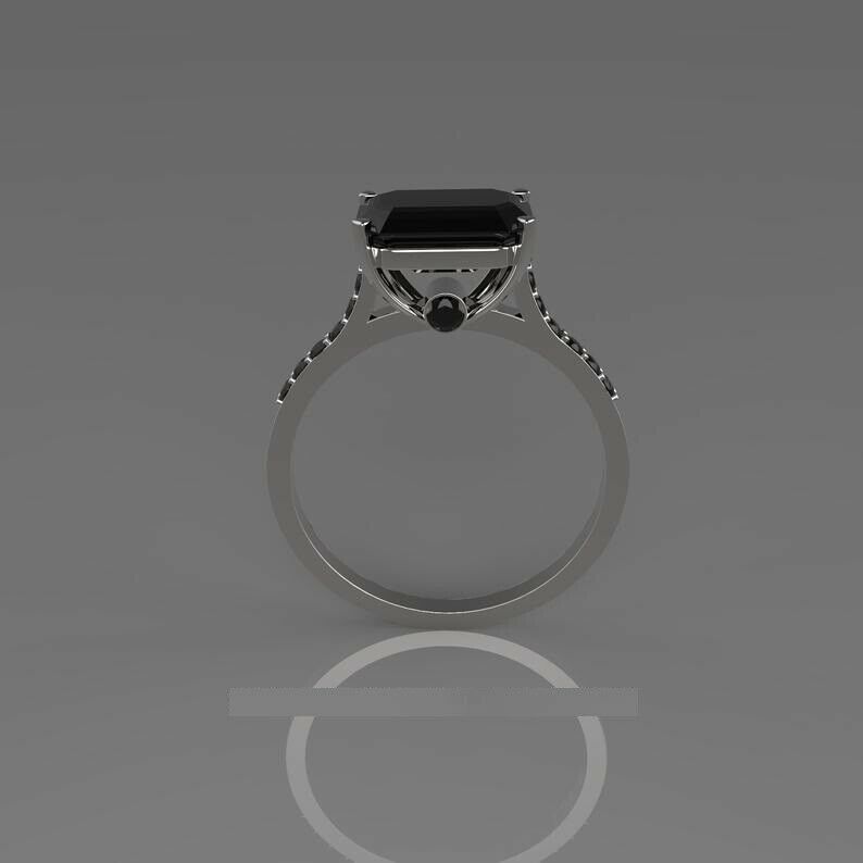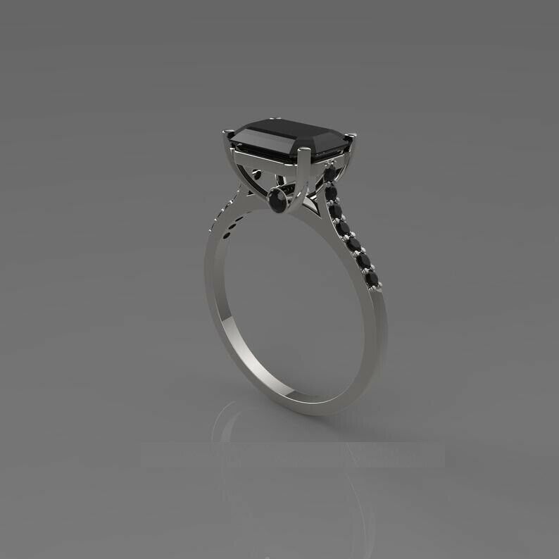 2.1ct Emerald Cut Black Diamond Engagement Ring Accents Solitaire 14k White Gold Over