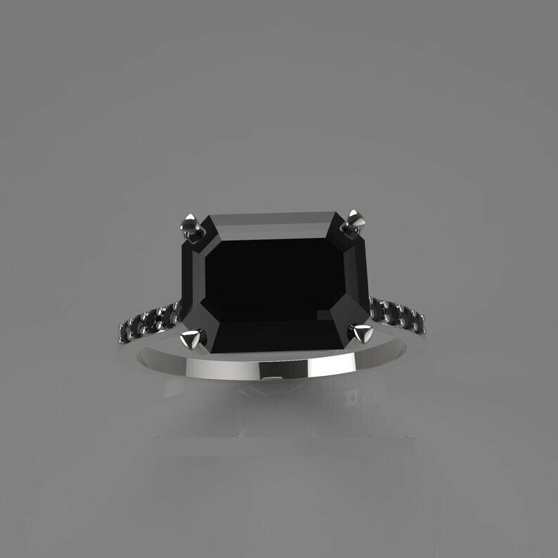 2.1ct Emerald Black Diamond Engagement Ring Accents Solitaire 14k WhiteGold Over