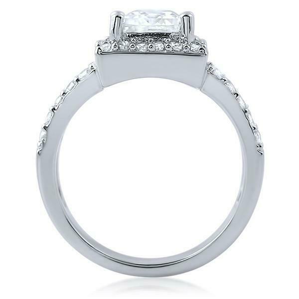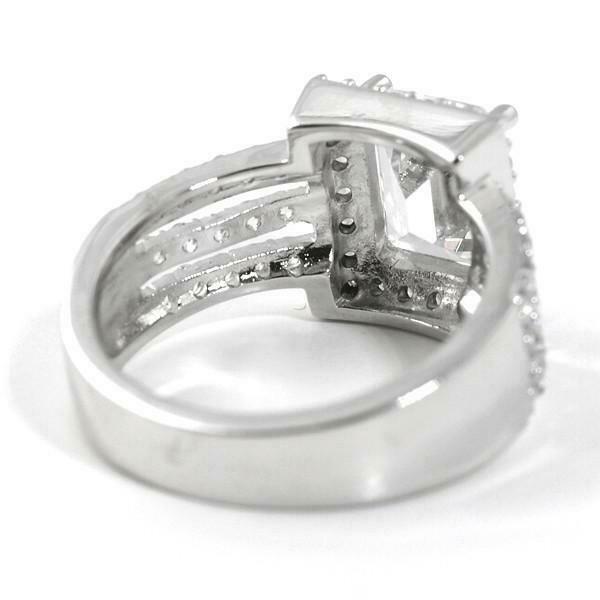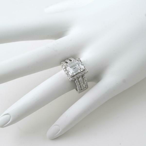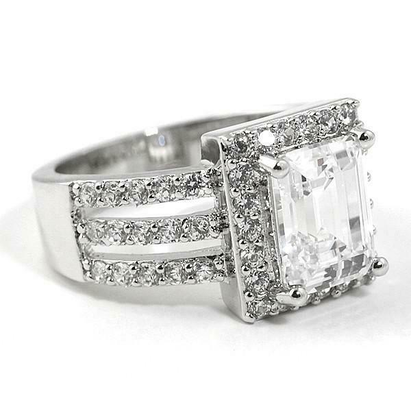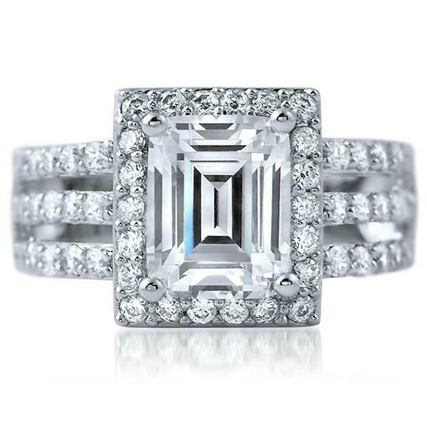 2.1ct Emerald Cut Diamond Engagement Ring Halo Split Shank 14k White Gold Finish