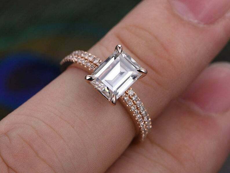 2.1ct Emerald Cut VVS1D Diamond Engagement Ring Bridal Set 14k Rose Gold Finish