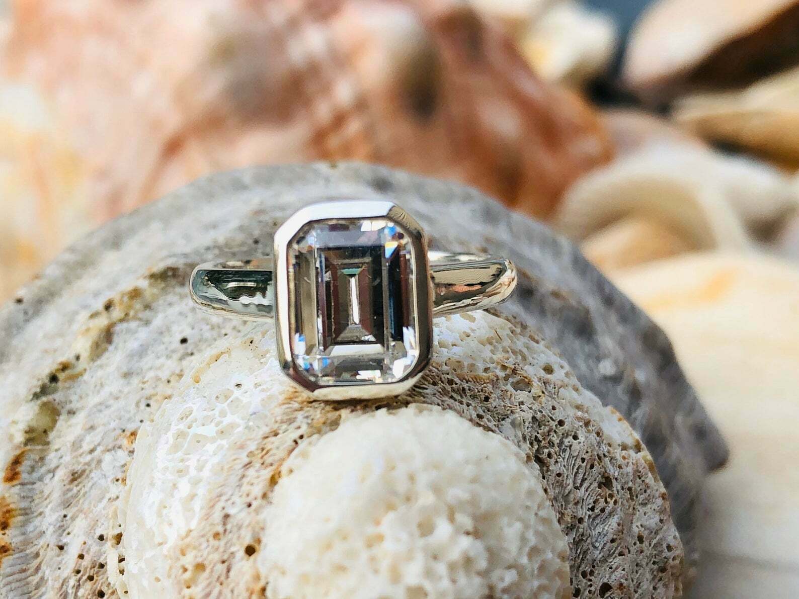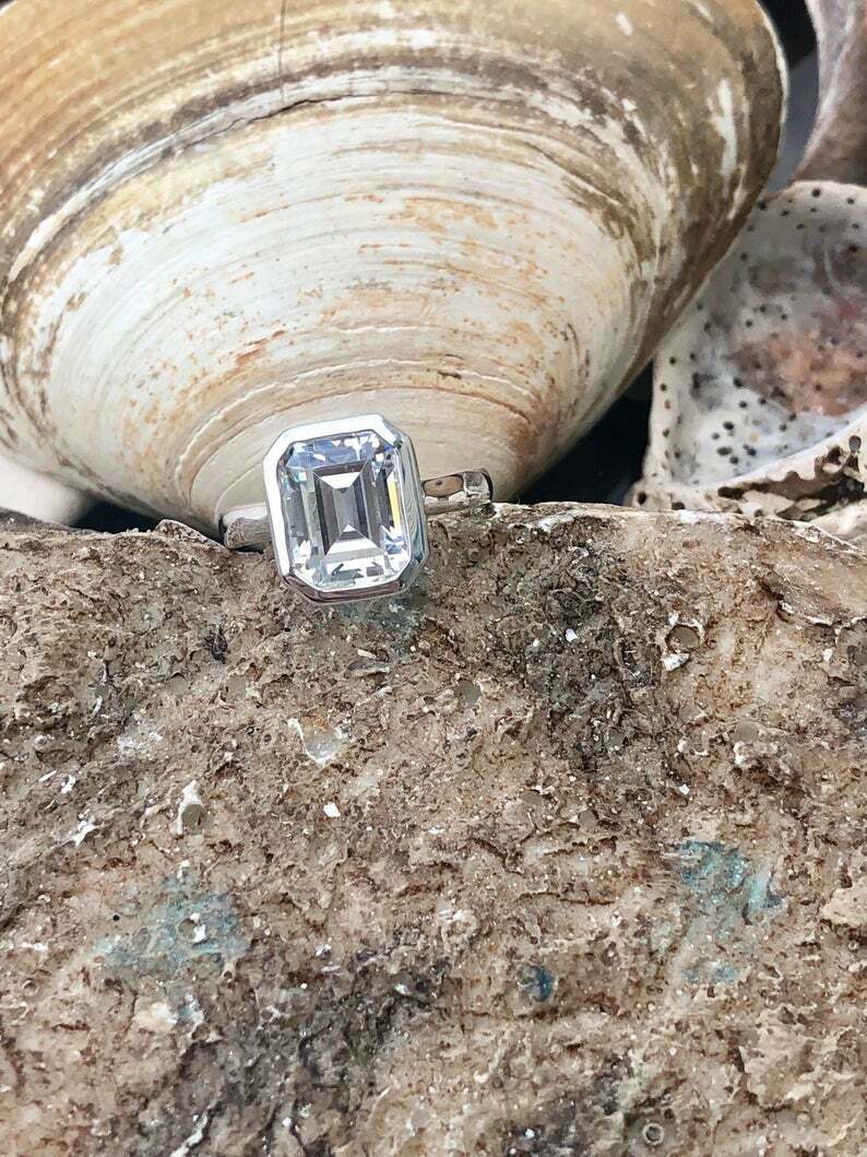 2.1ct Engagement Ring Emerald Cut Diamond Bezel Set Solitaire 14k WhiteGold Over