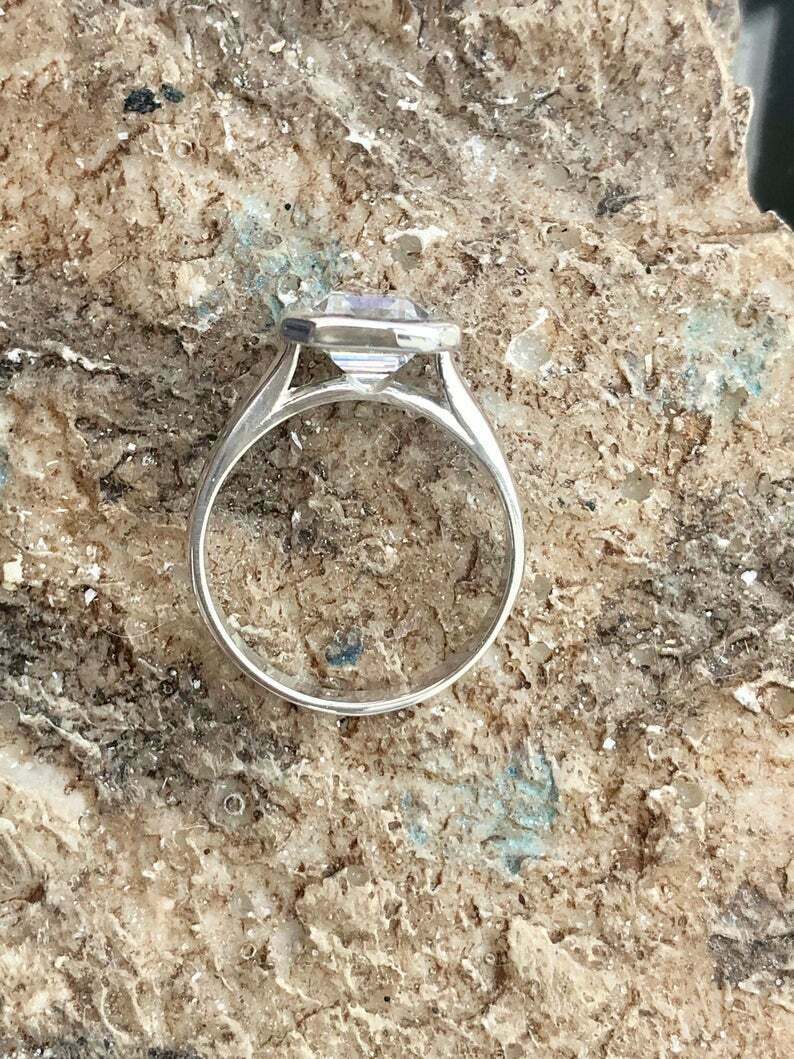 2.1ct Engagement Ring Emerald Cut Diamond Bezel Set Solitaire 14k White Gold Over