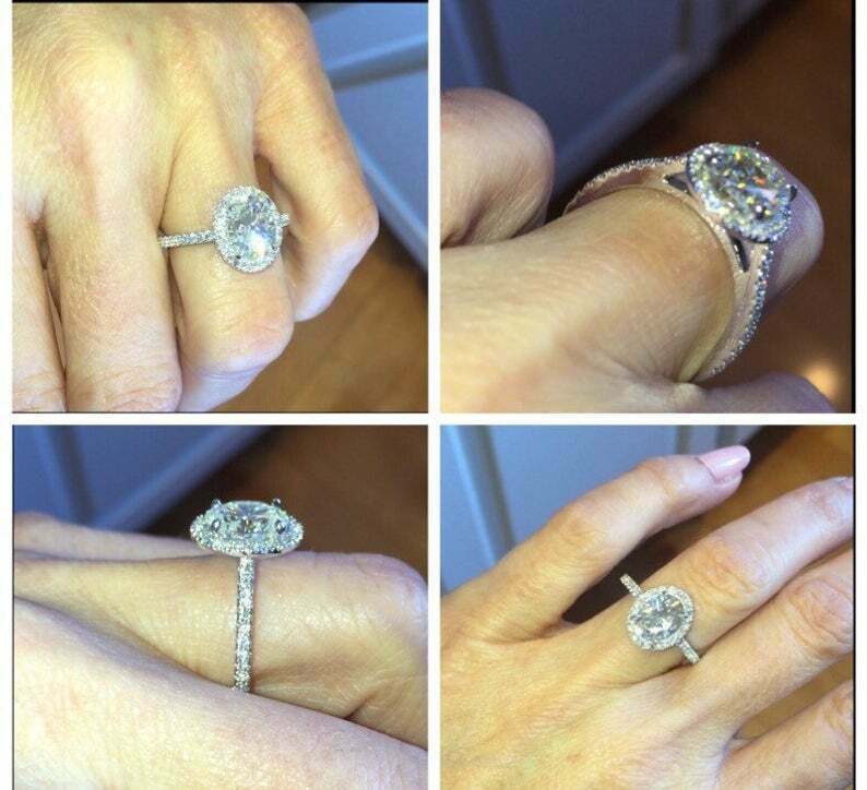 2.1ct Oval Cut Diamond Engagement Ring Classic Halo Solitaire 14k White Gold Over