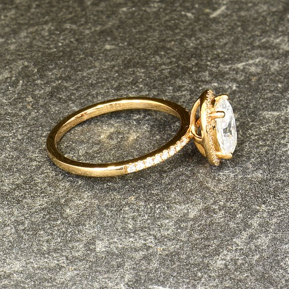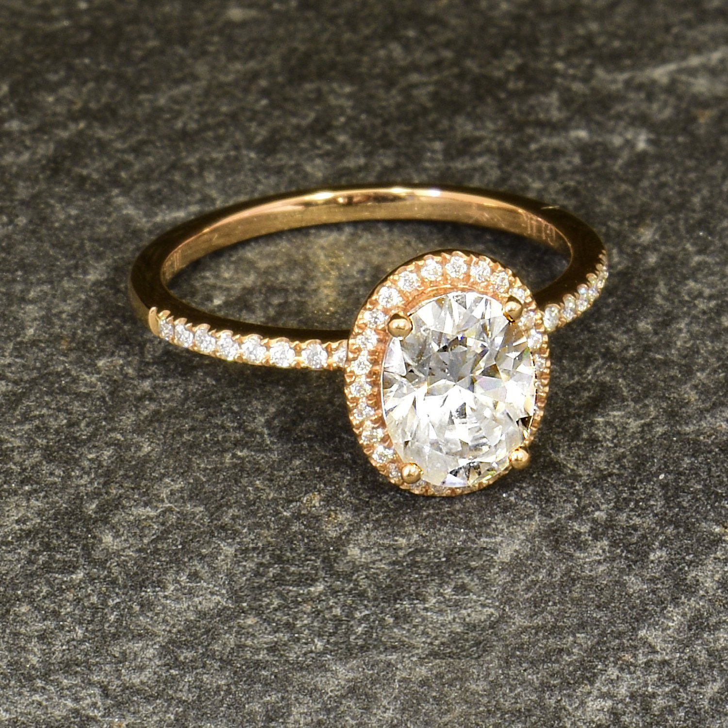 2.1ct Oval Cut VVS1D Diamond Engagement Ring 14k Yellow Gold Finish Halo Promise
