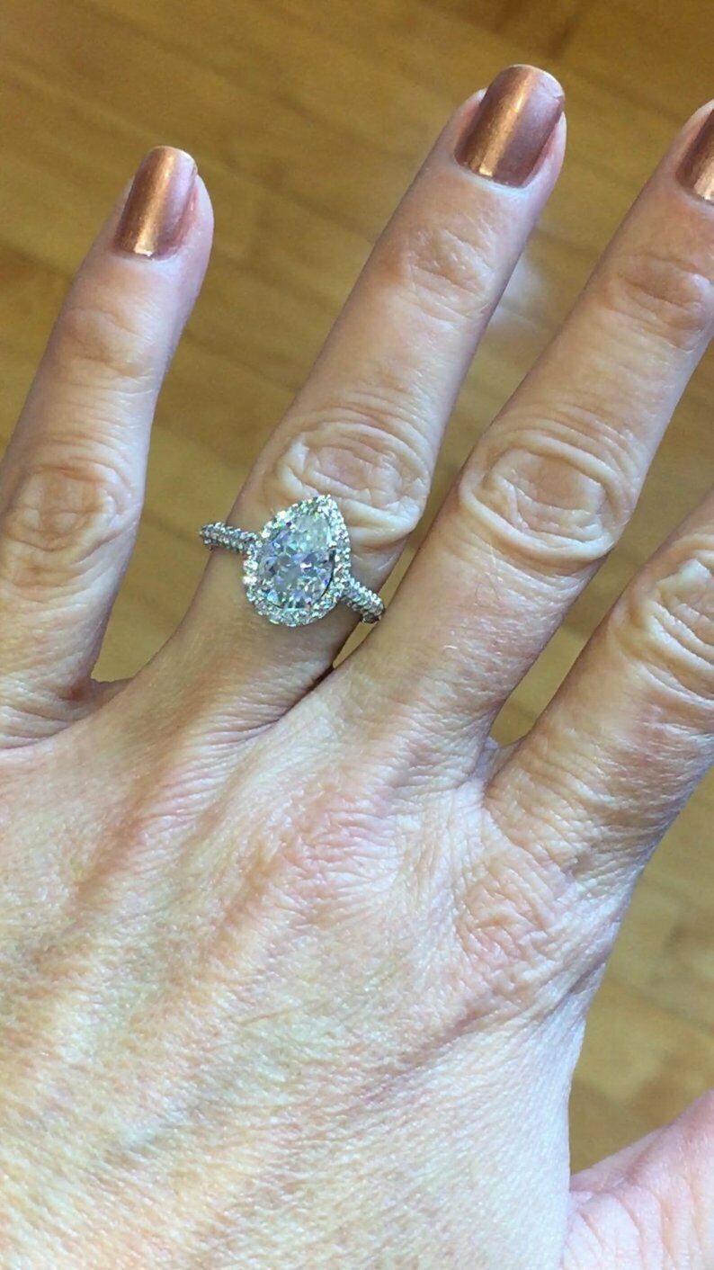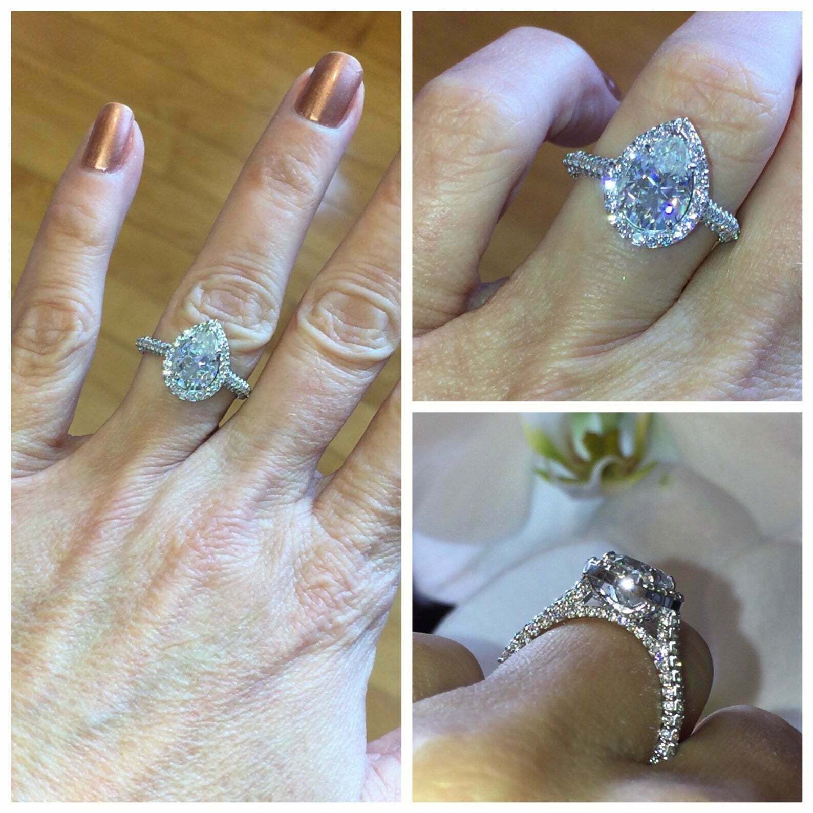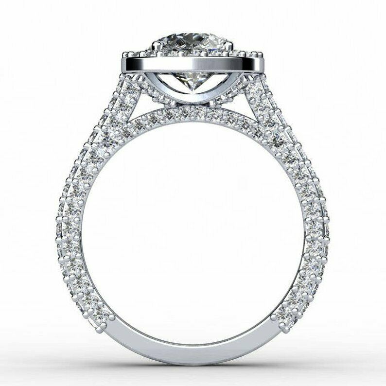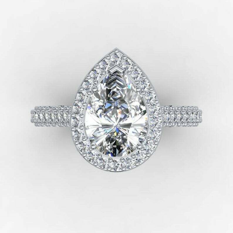 2.1ct Pear Cut Diamond Engagement Ring Halo 14k White Gold Finish Round Accents