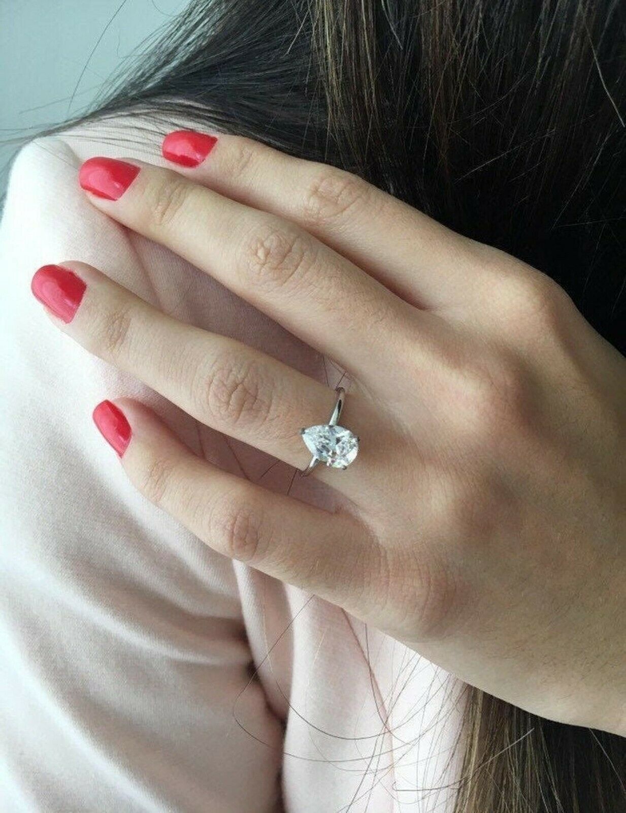 2.1ct Pear Cut Diamond Engagement Ring Solitaire Women 14k White Gold Finish