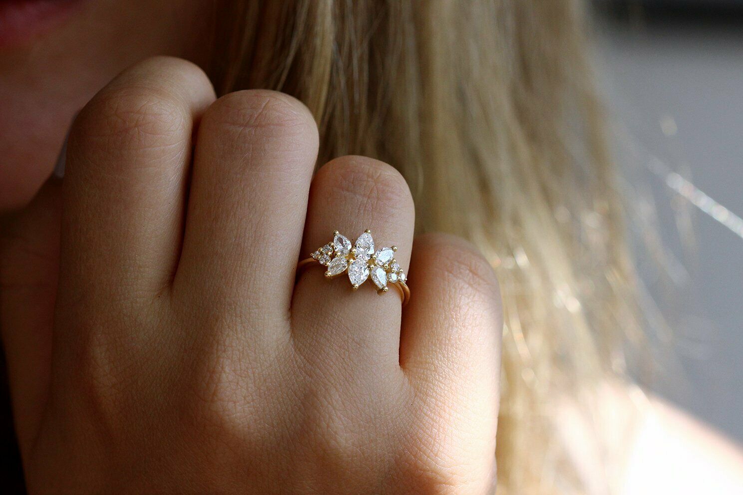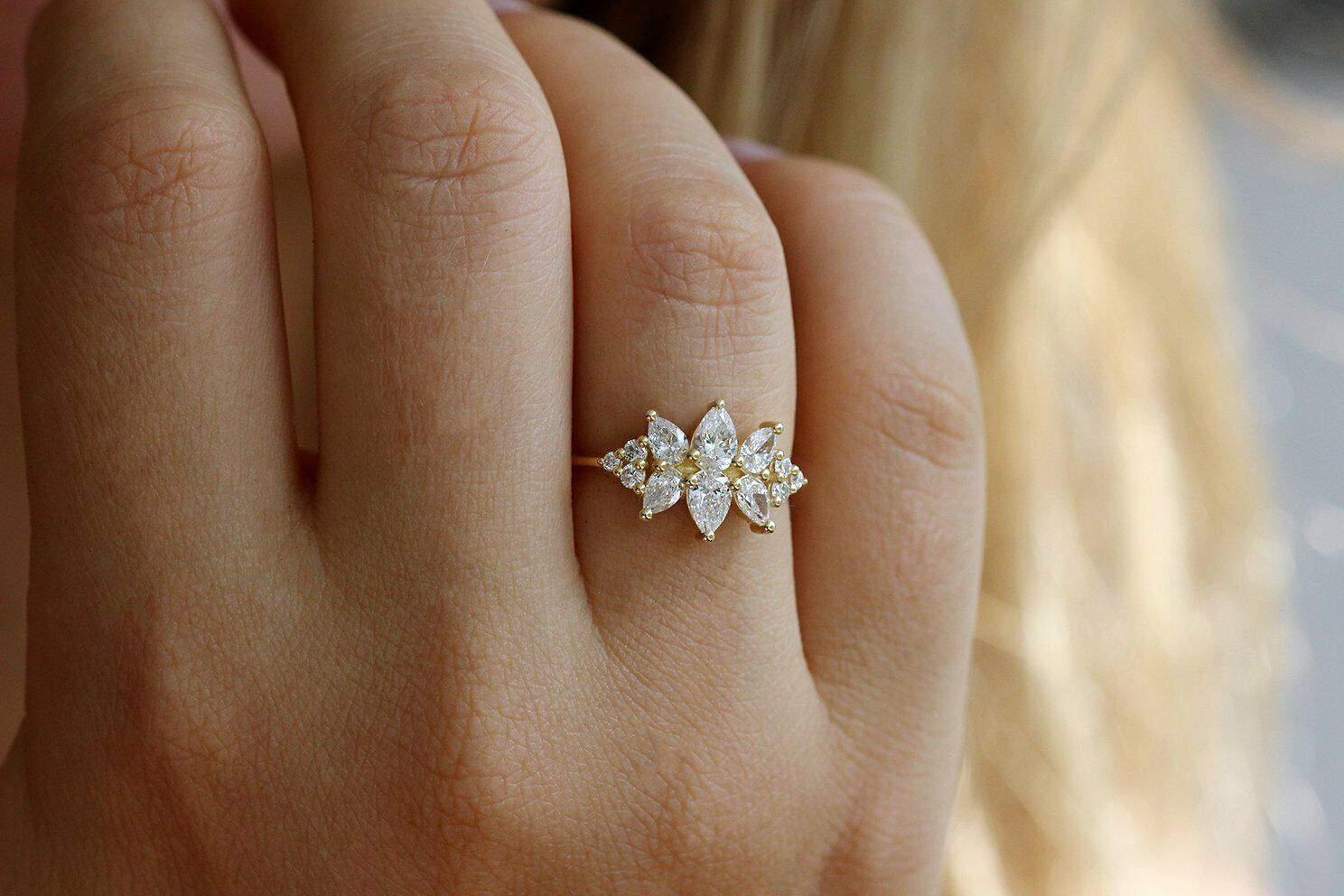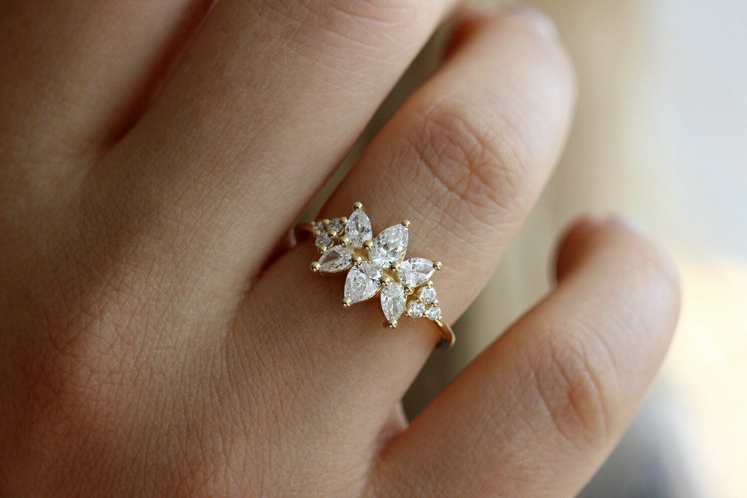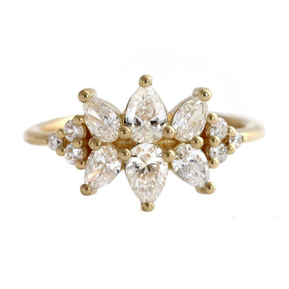 2.1ct Pear Cut VVS1D Diamond Engagement Ring 14k Yellow Gold Over Cluster Floral