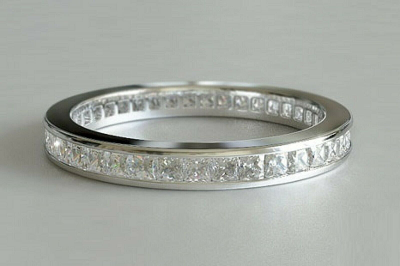2.1ct Princess Cut Diamond Wedding Ring Band Channel Set 14k White Gold Finish