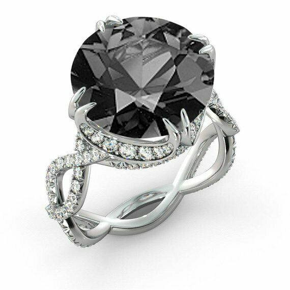 2.1ct Round Cut Black Diamond Infinity Engagement Ring 14k White Gold Finish