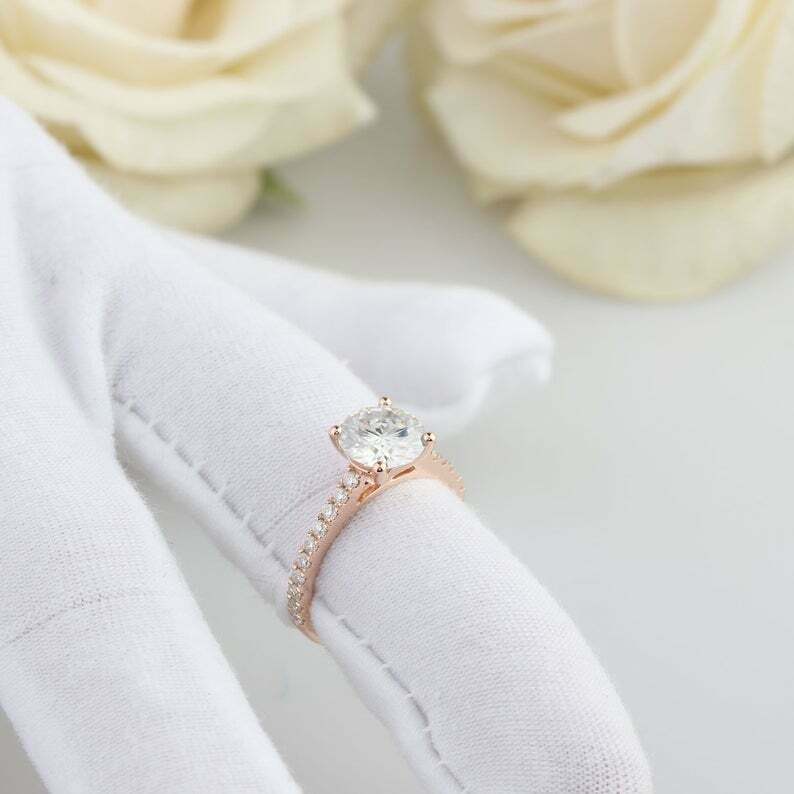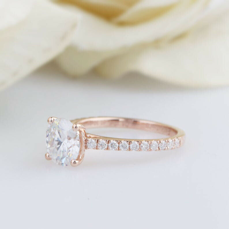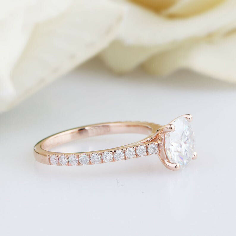 2.1ct Round Cut Diamond Engagement Ring Accents Solitaire 14k Rose Gold Finish