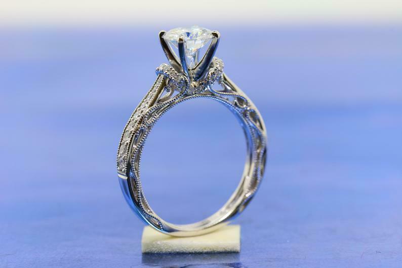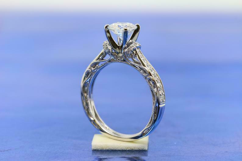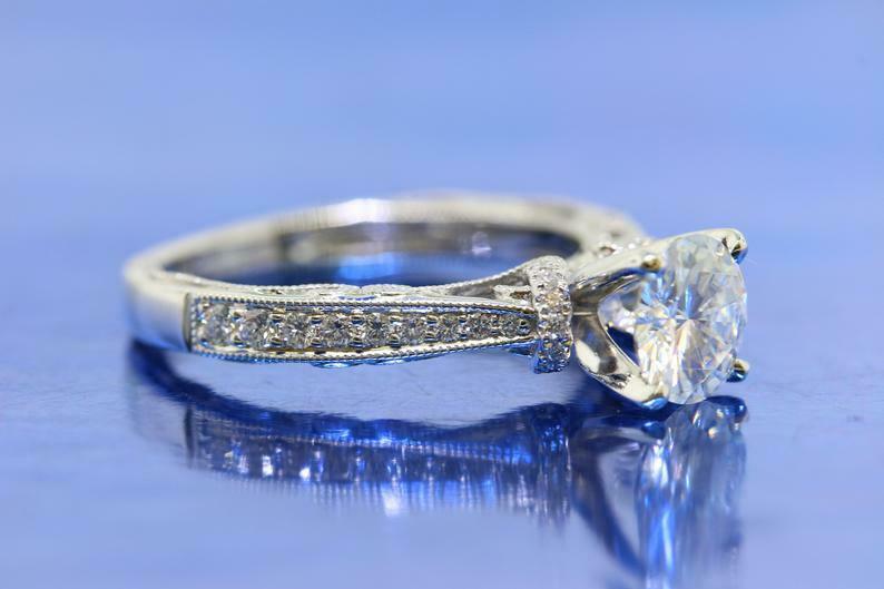 2.1ct Round Cut Diamond Engagement Ring Milgrain Bridal Set 18k White Gold Over