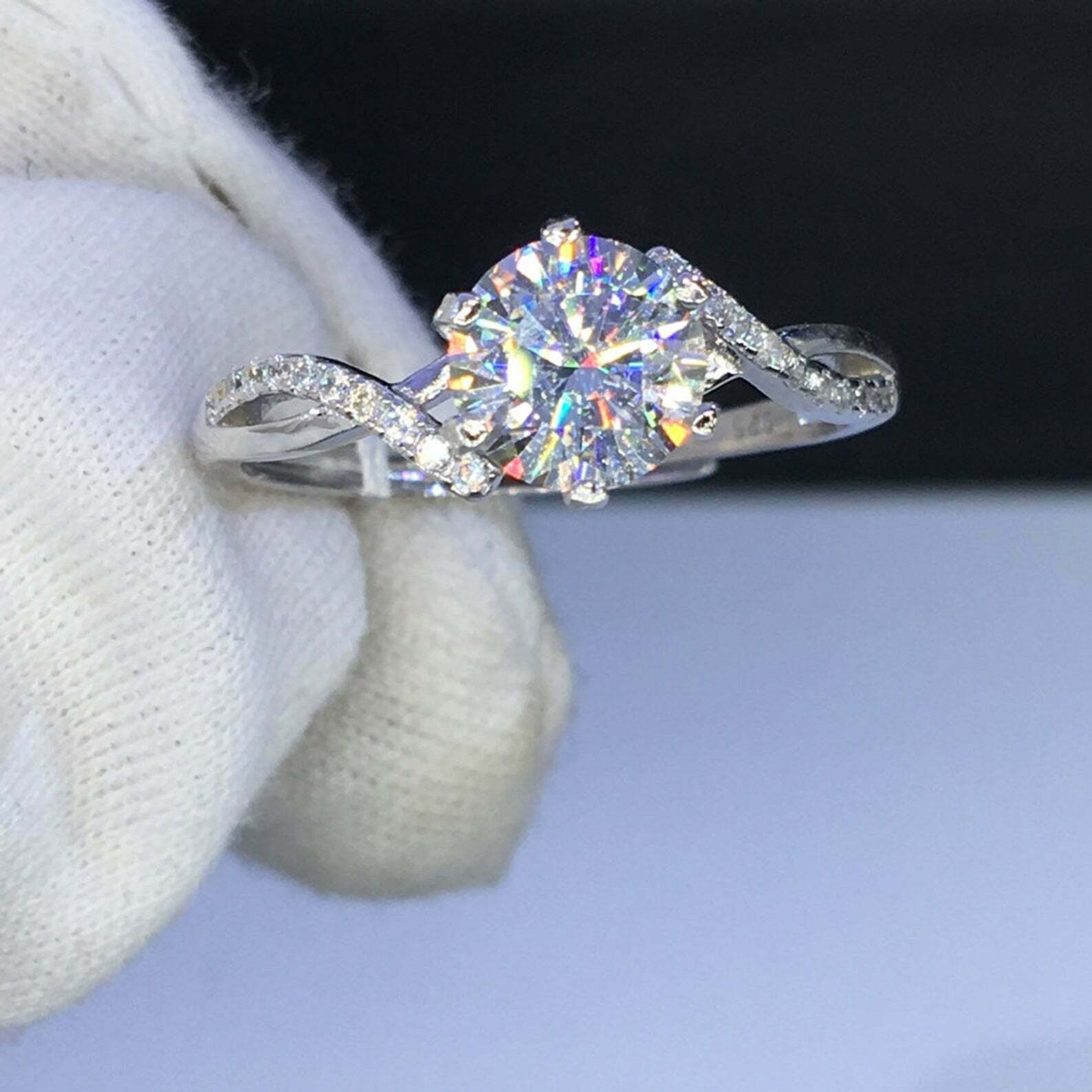 2.1ct Round Cut Diamond Engagement Ring Split Shank Solitaire 14k WhiteGold Over