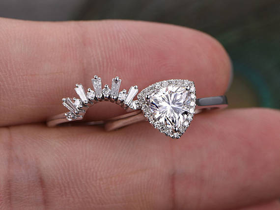 2.1ct Trillion Cut Diamond Engagement Ring 14k White Gold Finish Halo Bridal Set