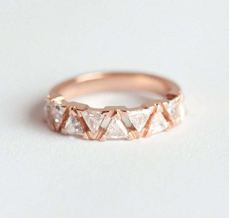 2.1ct Trillion Cut Diamond Wedding Band 14k Rose Gold Finish Inverted Triangle