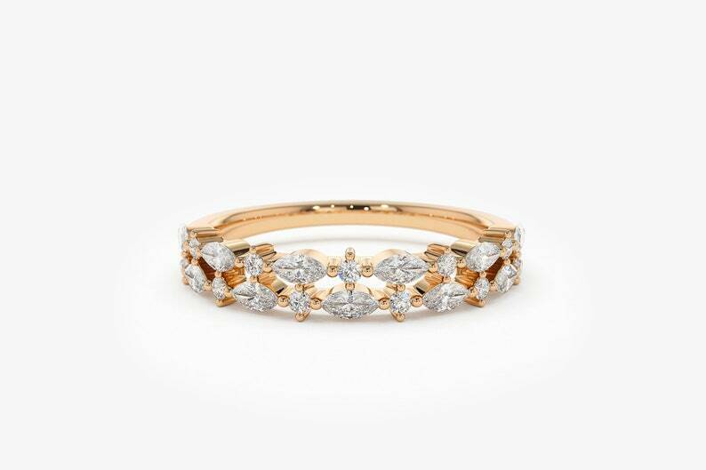 2.1ct Wedding Band Marquise Cut Diamond Dual Row Cluster 14k Rose Gold Finish
