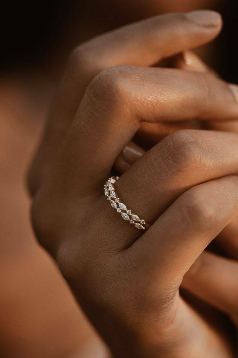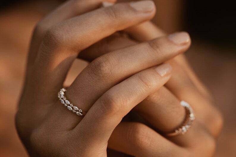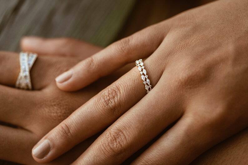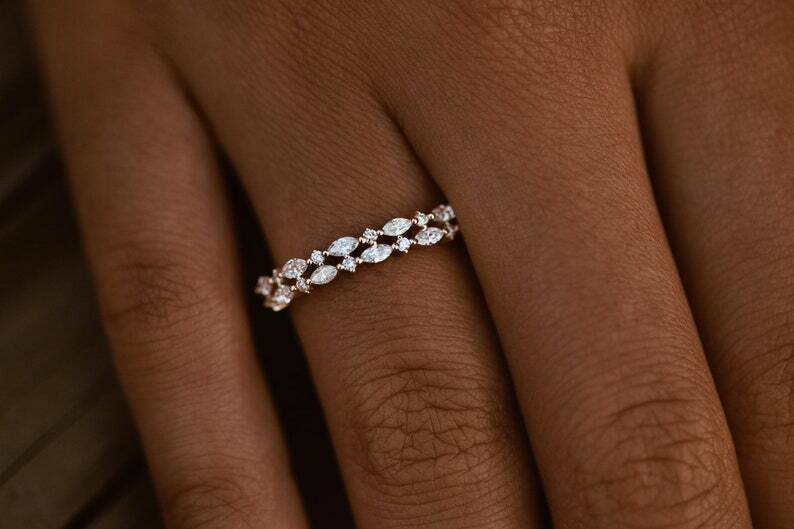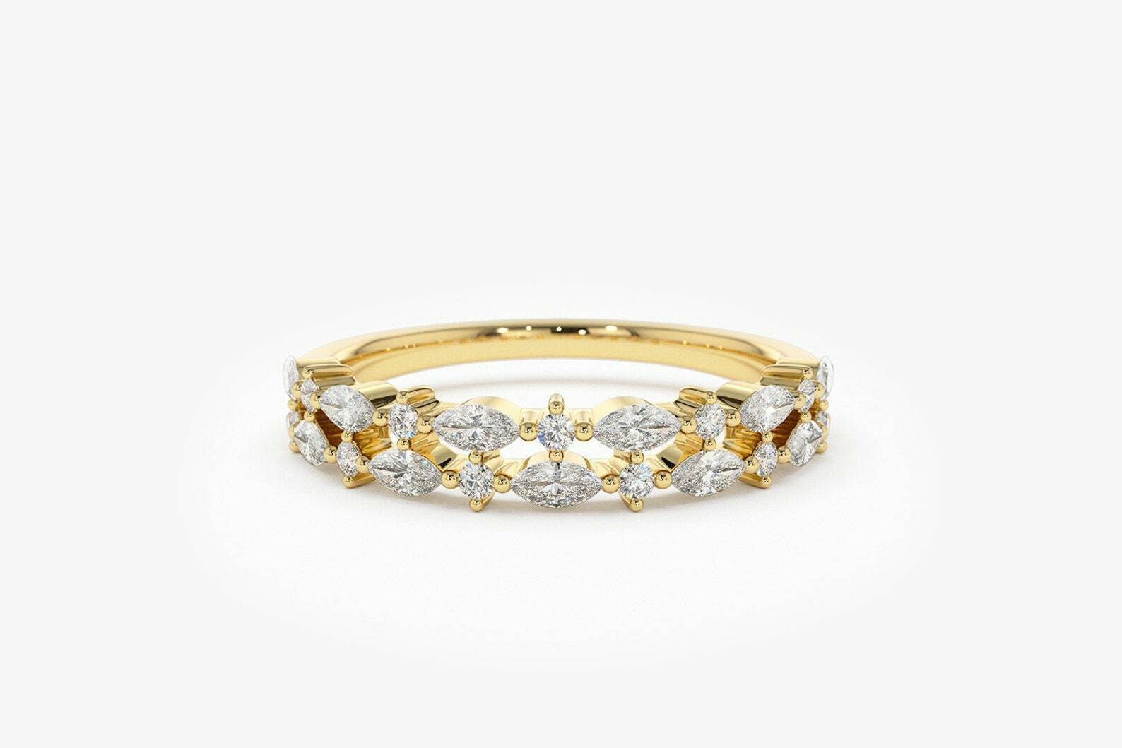 2.1ct Wedding Band Marquise Cut Diamond Dual Row Cluster 14k Yellow Gold Finish