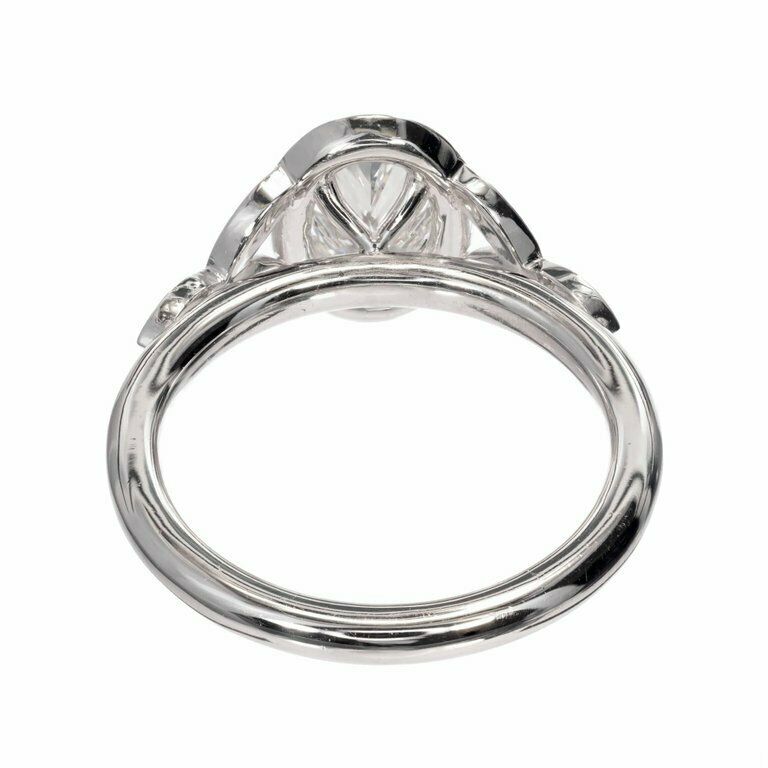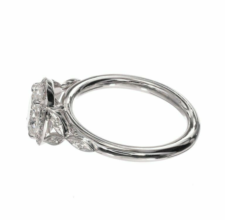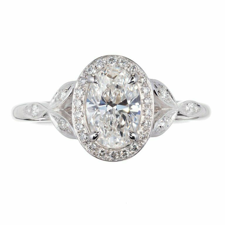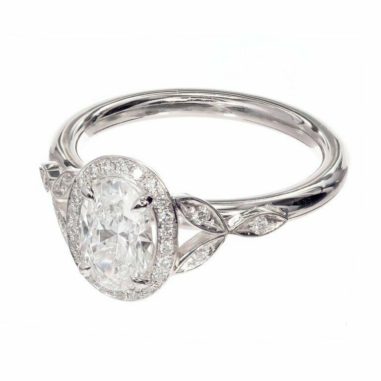 2.23ct Oval Cut Diamond Engagement Ring Halo Leaf Design 14k White Gold Finish