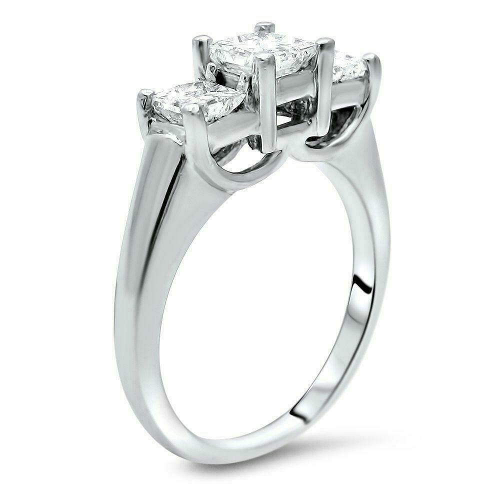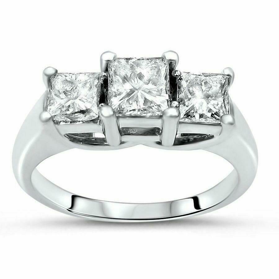 2.25ct Princess Cut Diamond Three Stone Engagement Ring 14K White Gold Finish
