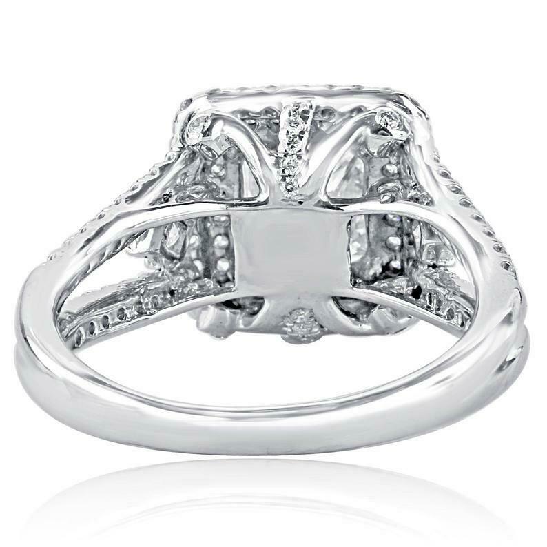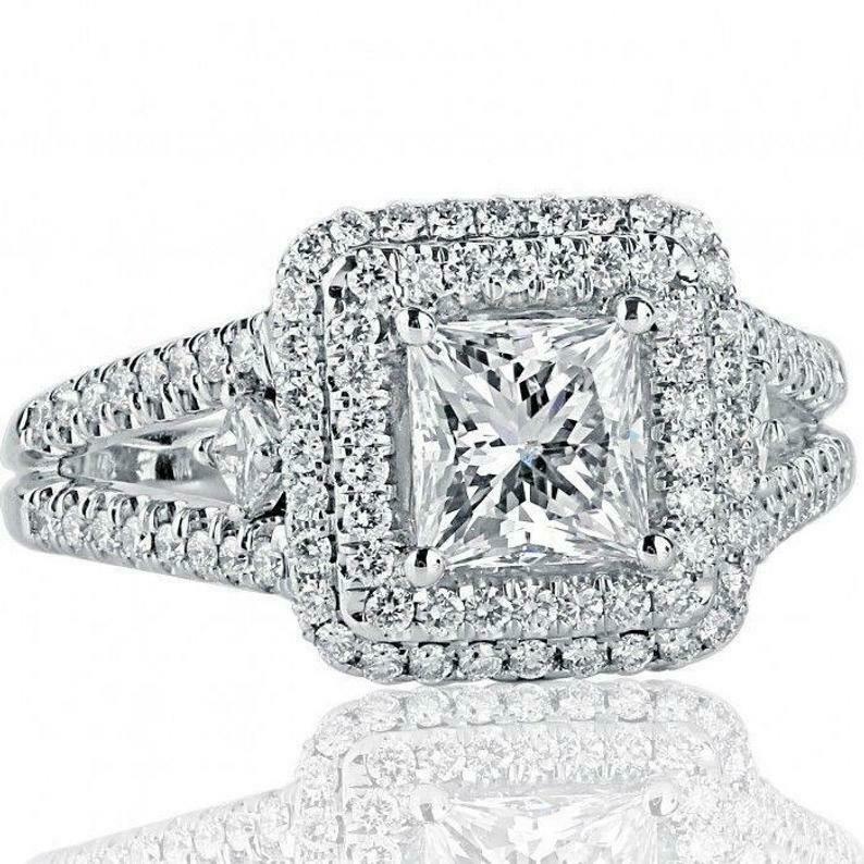 2.25ct Princess Cut Diamond Engagement Ring Dual Halo Split Band 14k White Gold Over