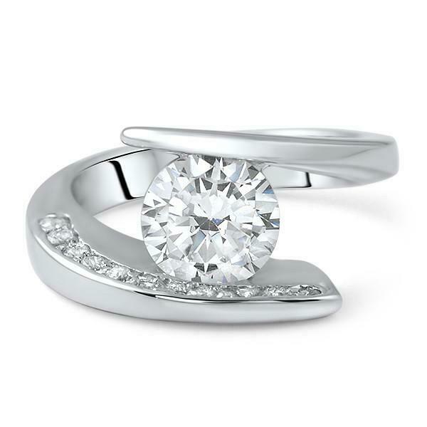 2.25ct Round Cut Diamond Engagement Ring Unique Bypass 14k White Gold Finish