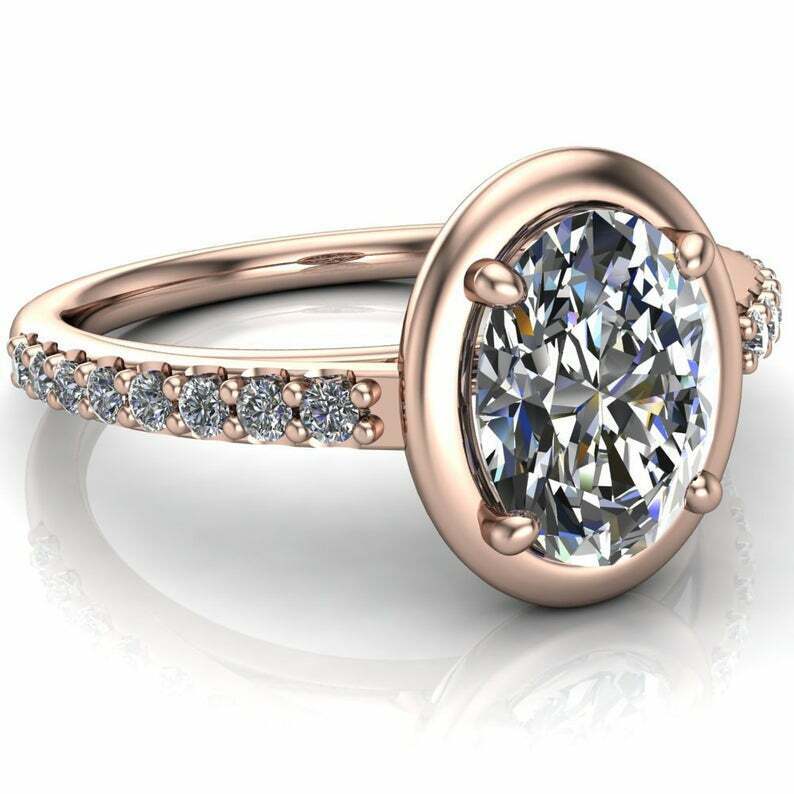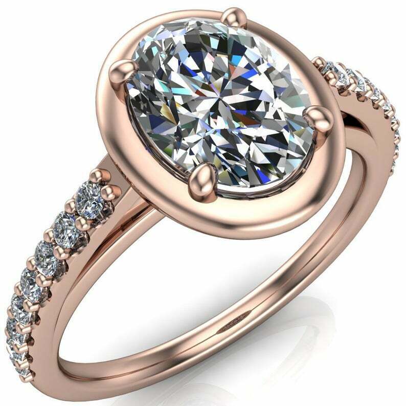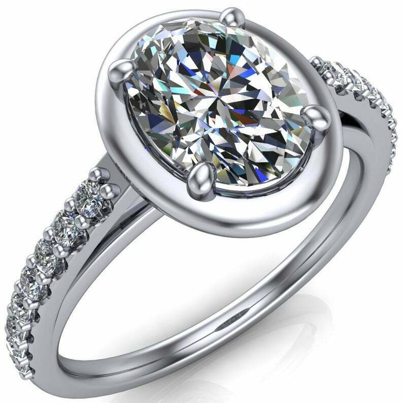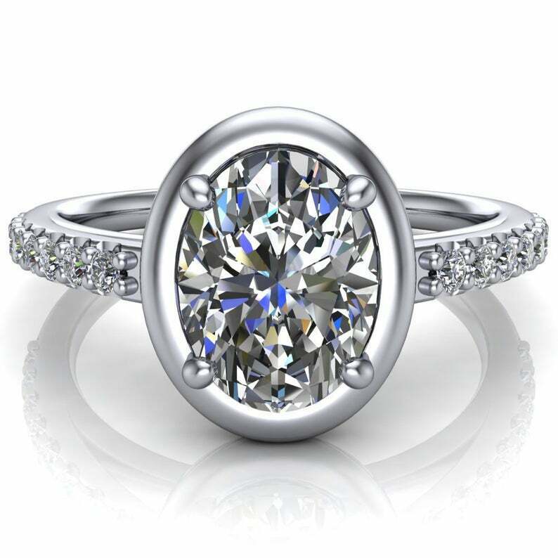2.26ct Oval Cut Diamond Engagement Ring Solitaire with Accent 14k White Gold Over