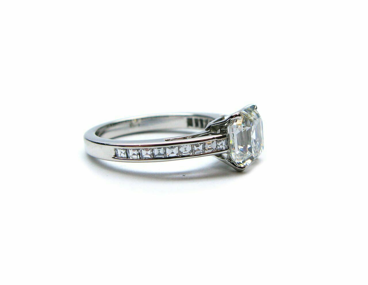 2.2ct Asscher Cut Diamond Engagement Ring Accent Solitaire 14k White Gold Finish