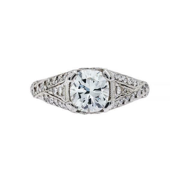 2.2ct Cushion Cut Diamond Vintage Milgrain Bridal Set Ring 14k White Gold Finish