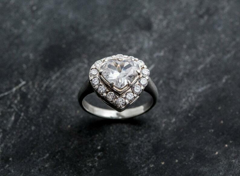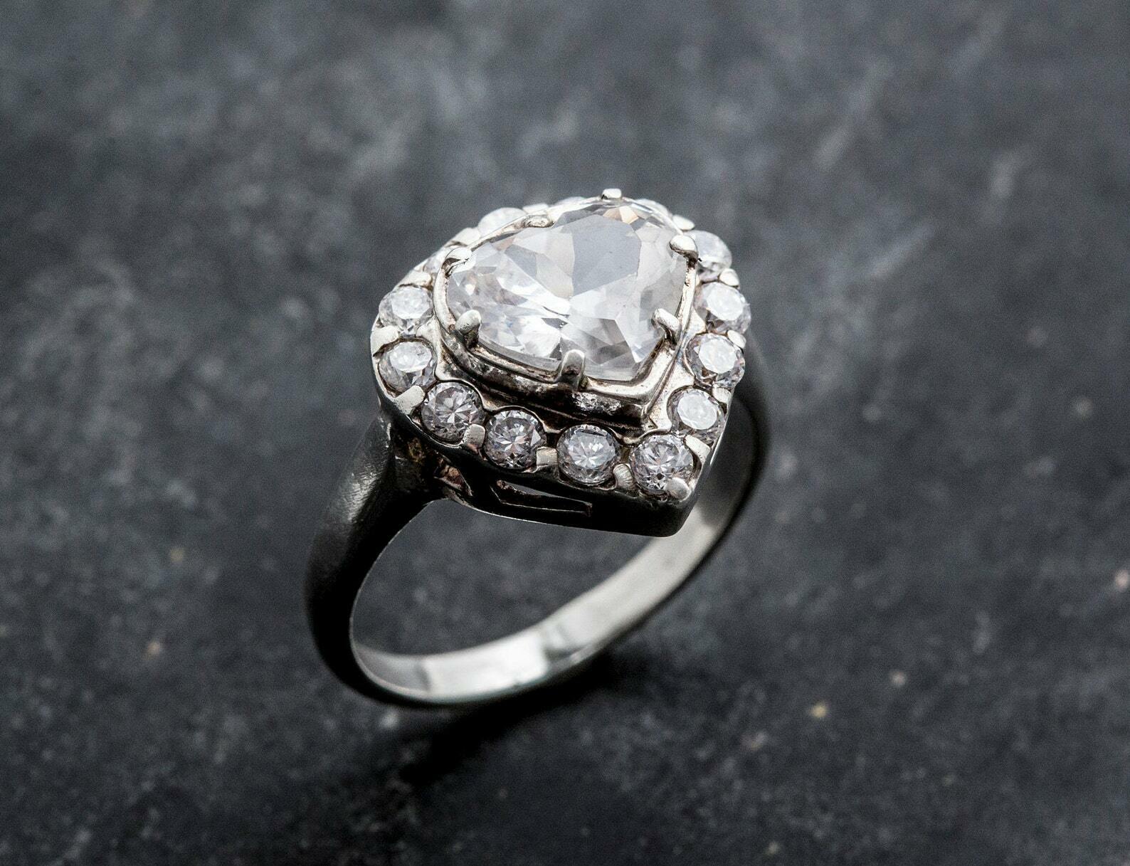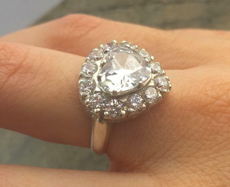 2.2ct Engagement Ring Heart Cut Diamond Halo Solitaire 14k White Gold Finish