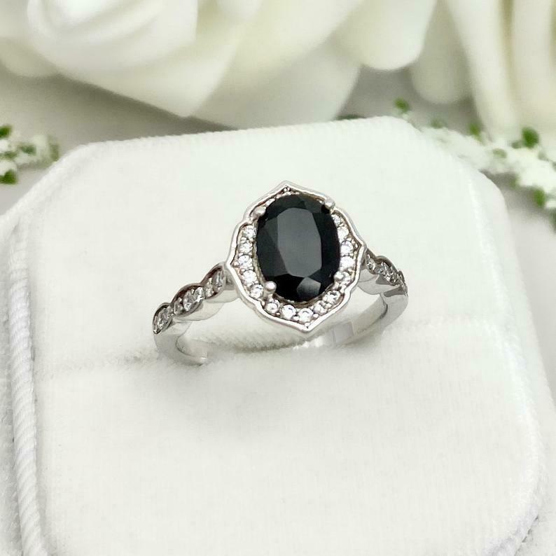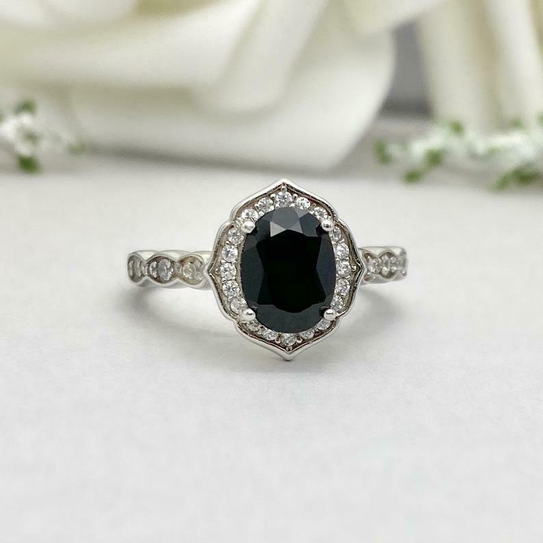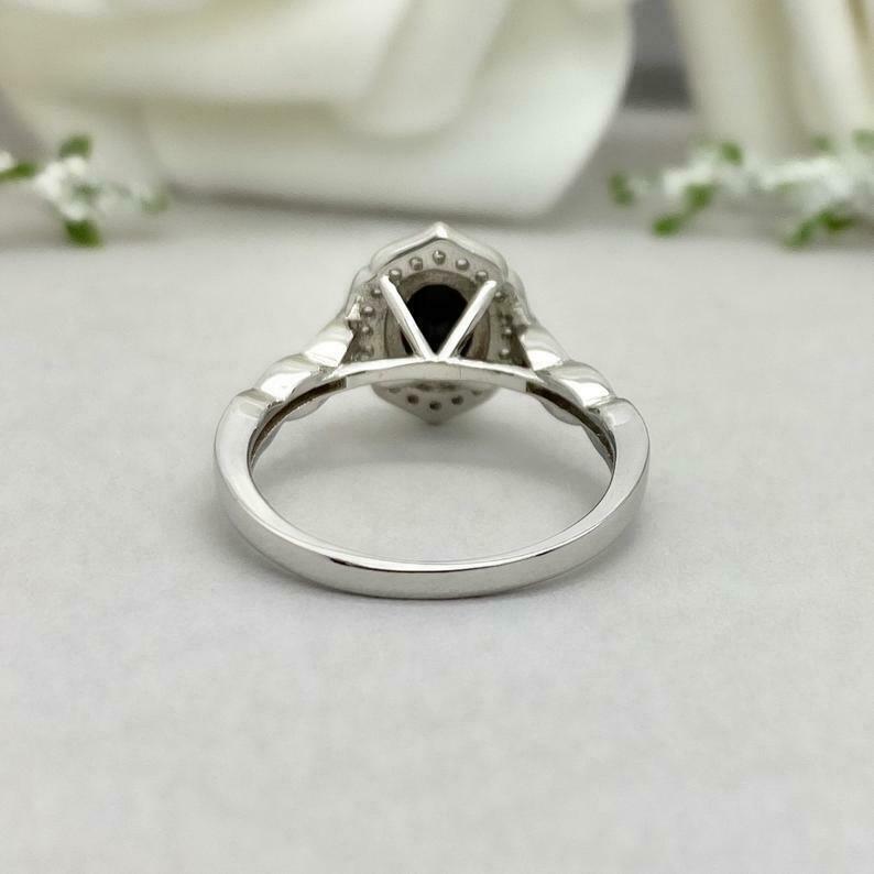 2.2ct Engagement Ring Oval Cut Black Diamond Halo Design 14k White Gold Finish