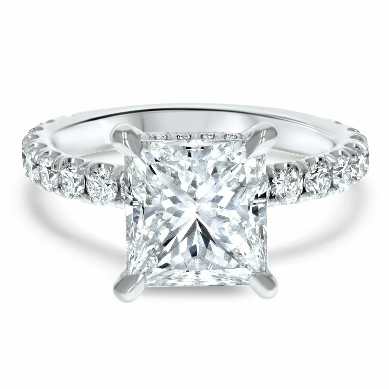 2.2ct Engagement Ring Princess Cut Diamond Accent Solitaire 14k WhiteGold Finish