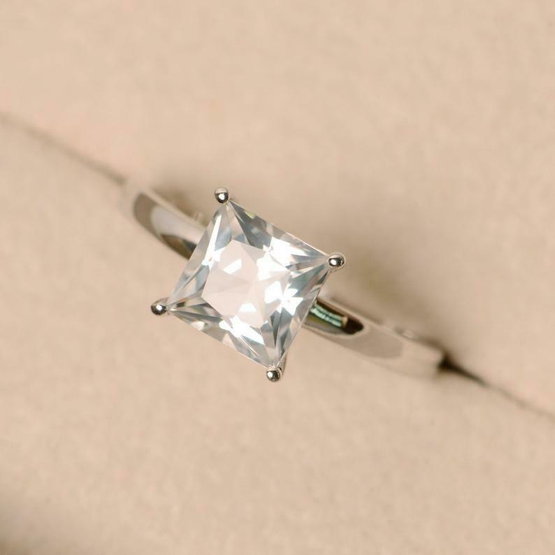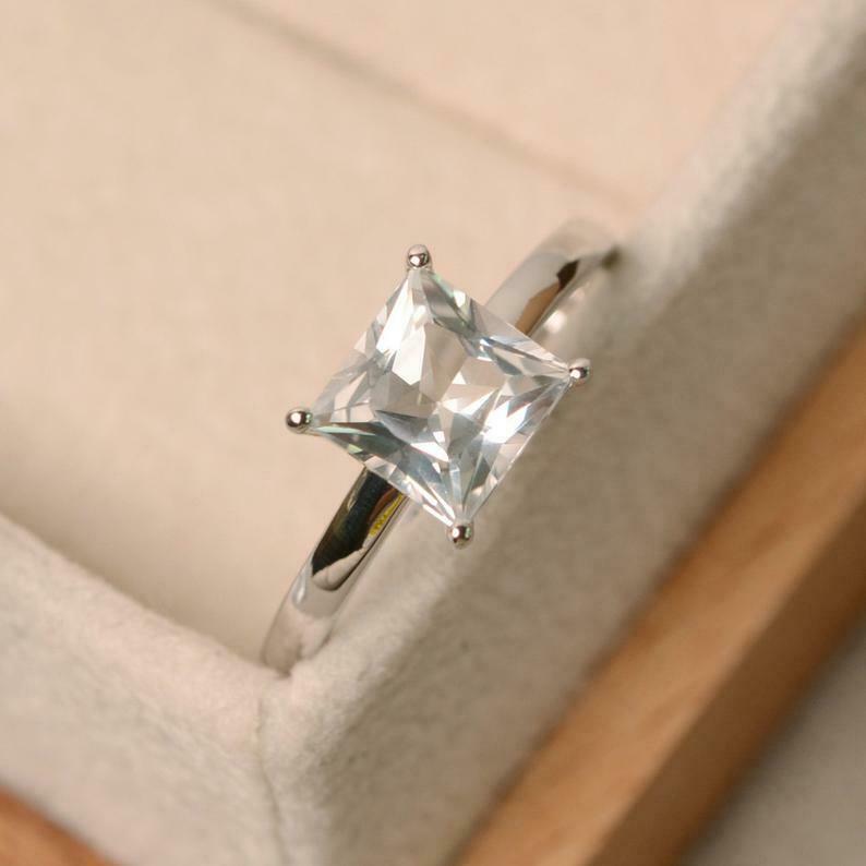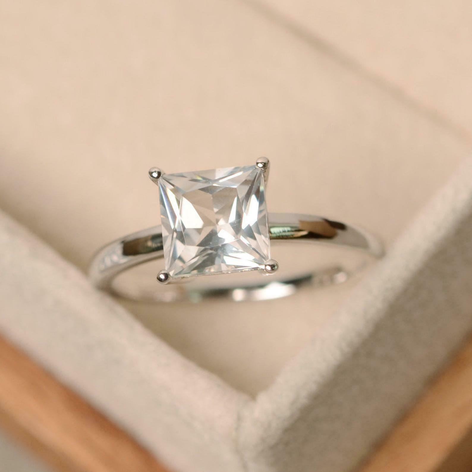 2.2ct Engagement Ring Princess Cut Diamond Solitaire Design 14k White Gold Finish