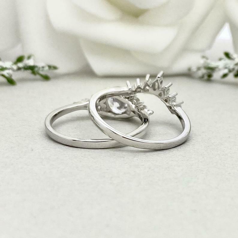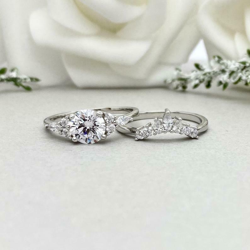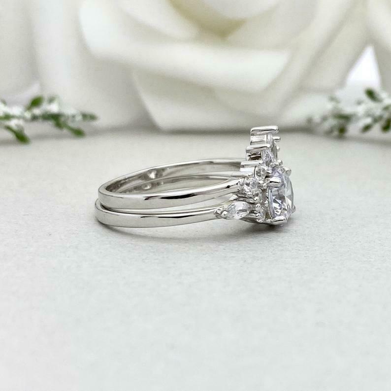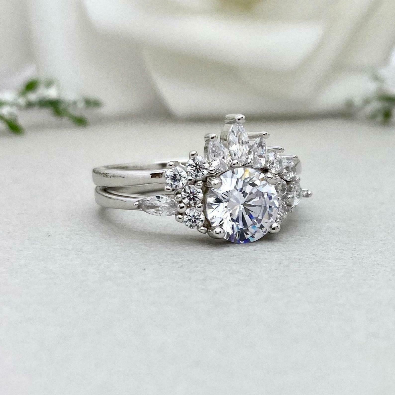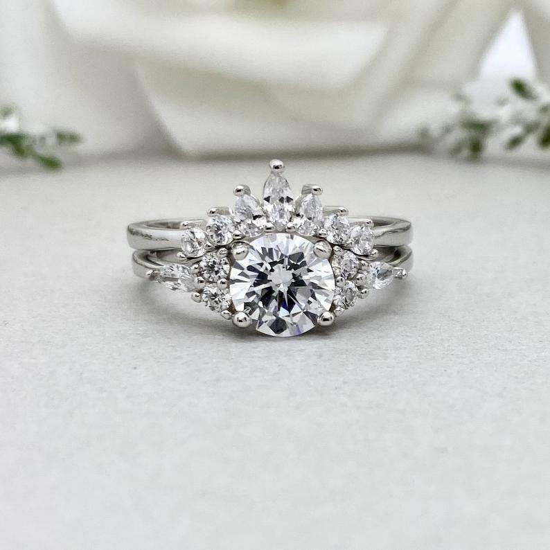 2.2ct Engagement Ring Round Cut Diamond Crown Bridal Set 14k White Gold Finish