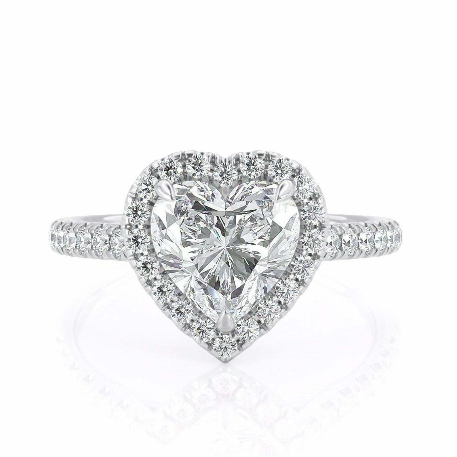 2.2ct Heart Diamond Engagement Ring Halo 14k White Gold Finish with Round Accents