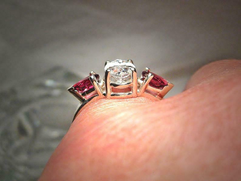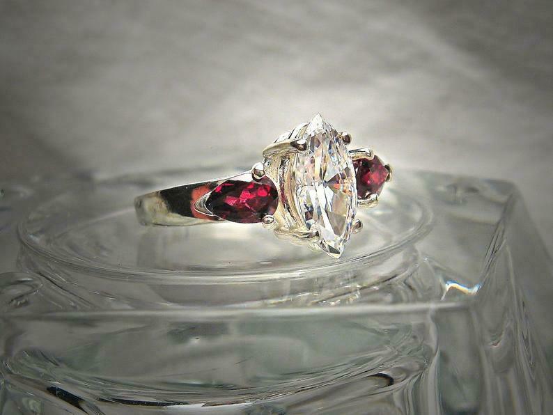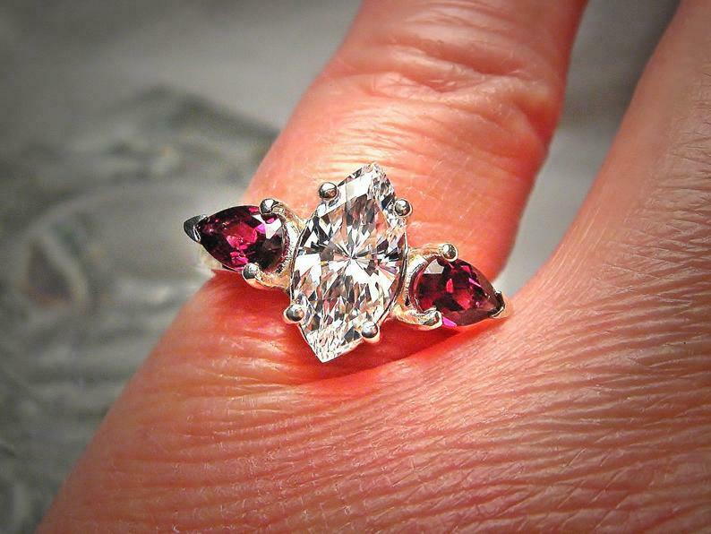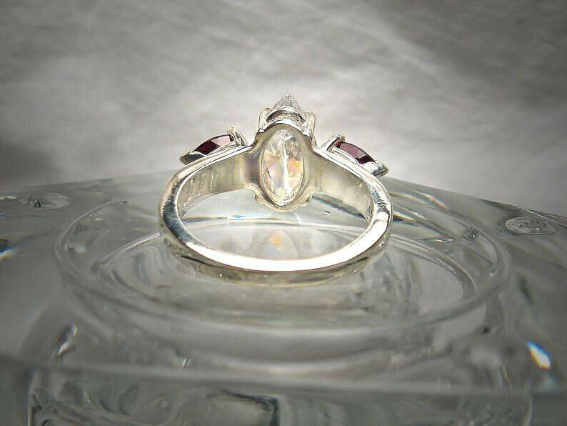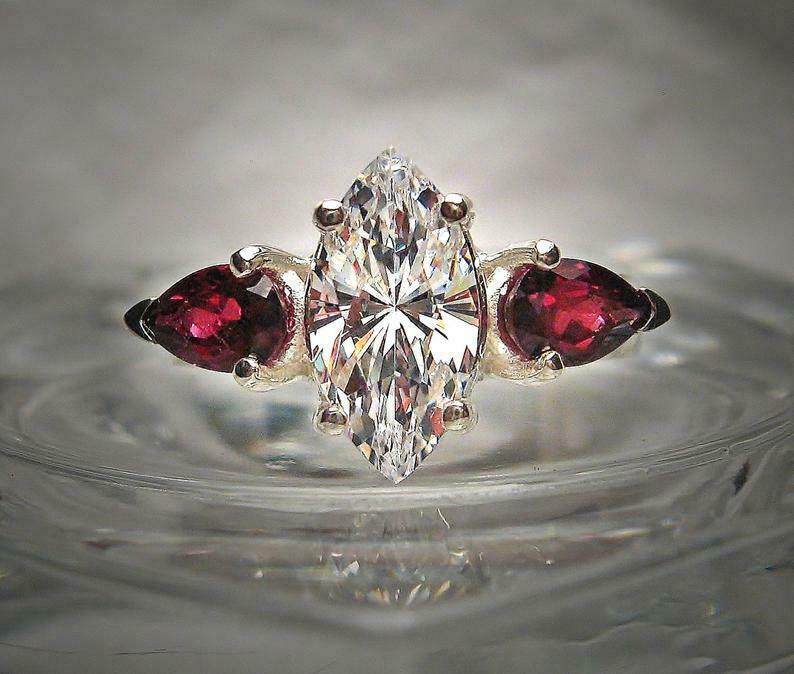 2.2ct Marquise Cut Diamond Trilogy Ring 14k White Gold Finish Ruby Pear Accents