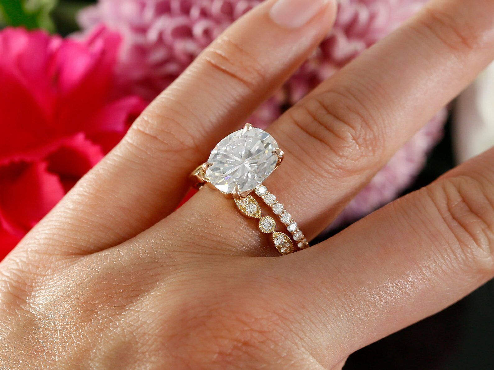 2.2ct Oval Cut Diamond Bridal Set Vintage Engagement Ring 14k Yellow Gold Finish