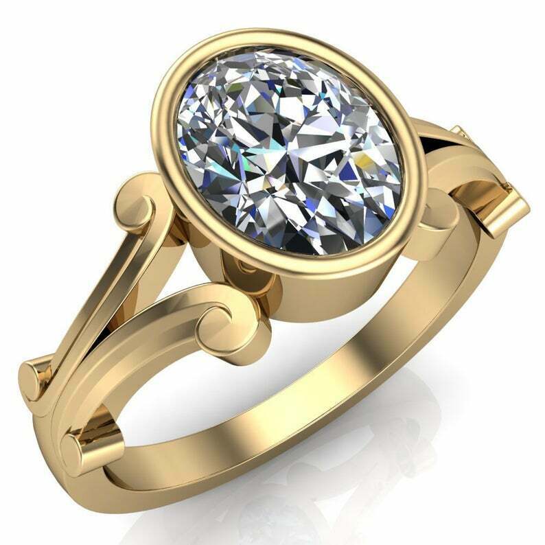 2.2ct Oval Cut Diamond Engagement Ring Bezel Set Split Shank 14k Rose Gold Finish