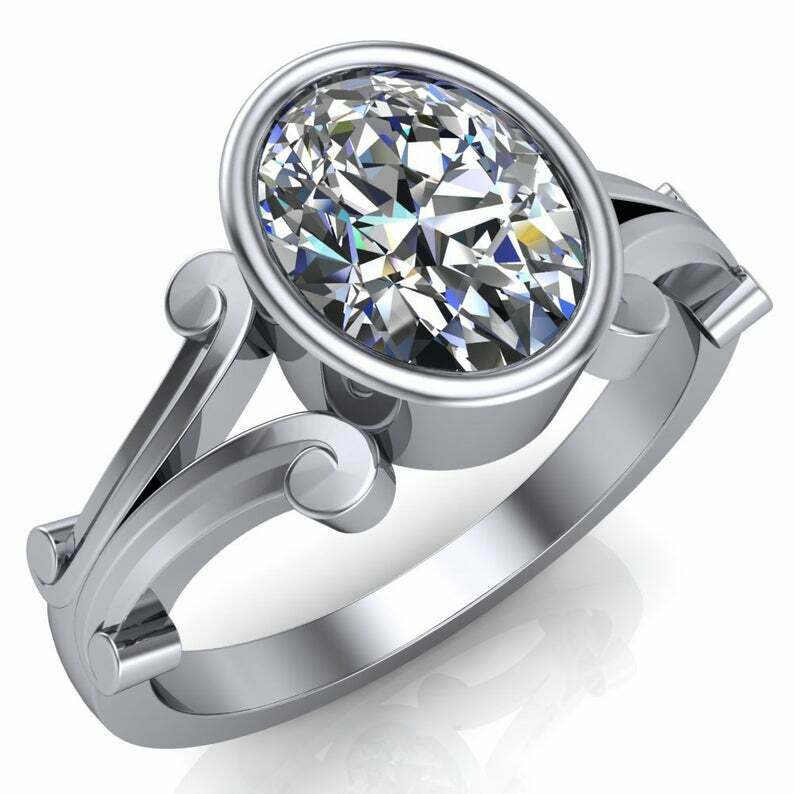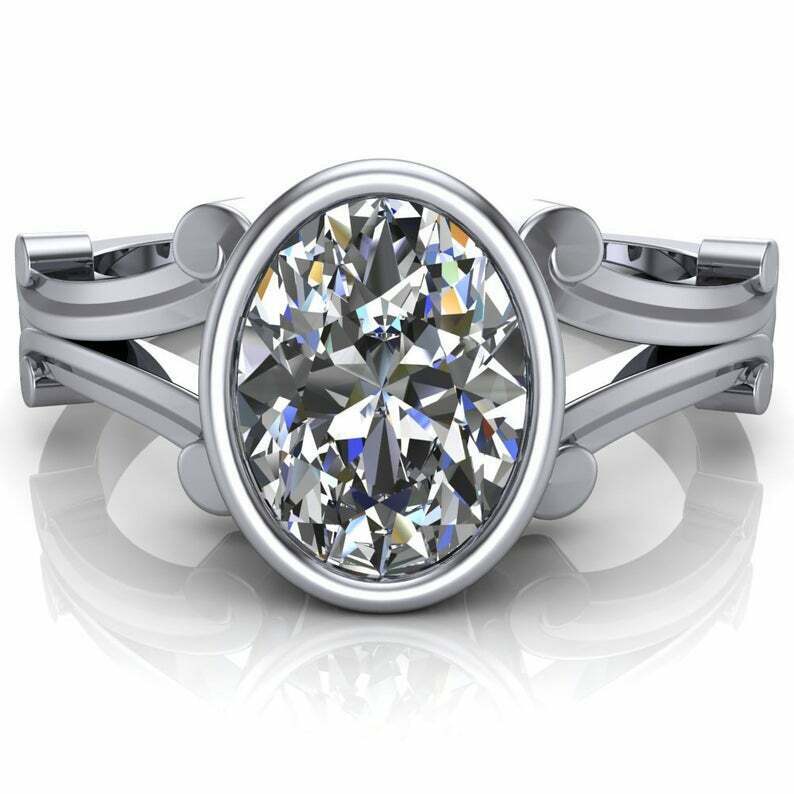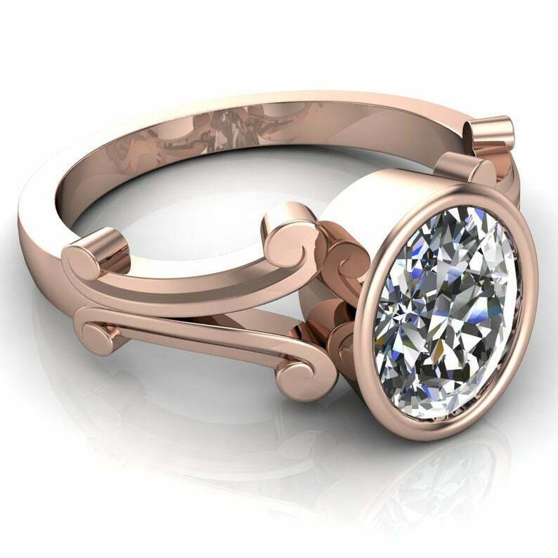 2.2ct Oval Cut Diamond Engagement Ring Bezel Set Split Shank 14k RoseGold Finish