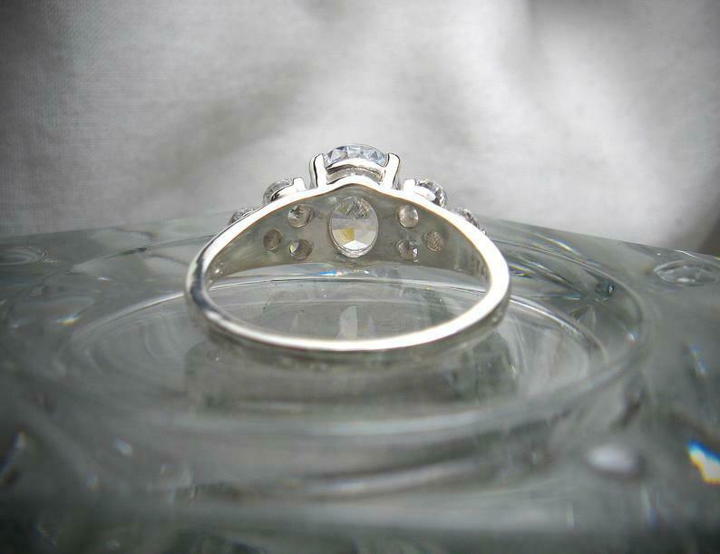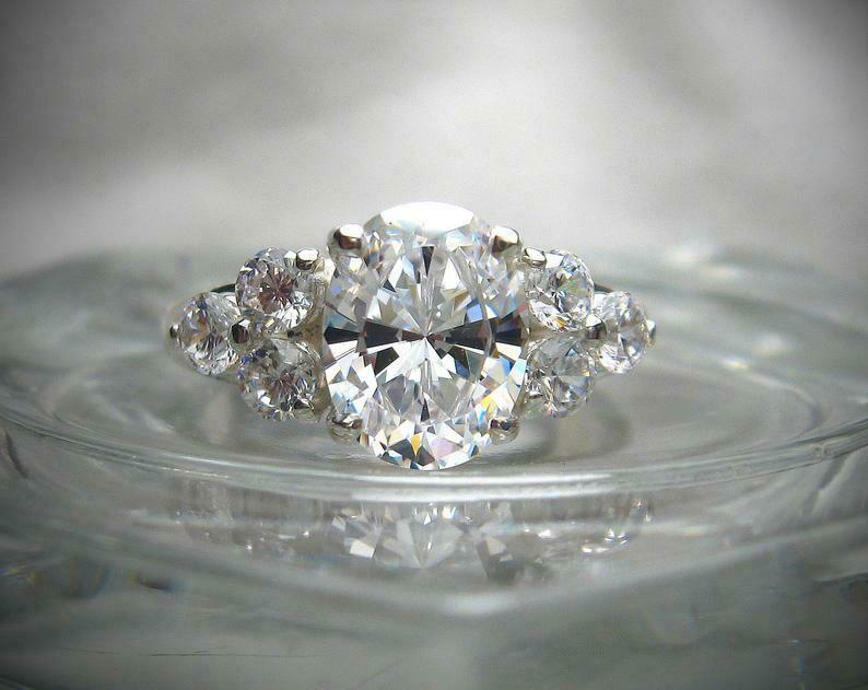 2.2ct Oval Cut Diamond Petite Round Accents Solitaire Ring 14k White Gold Finish