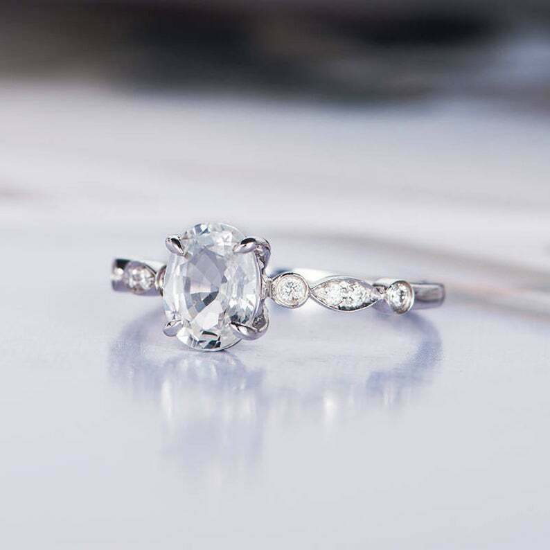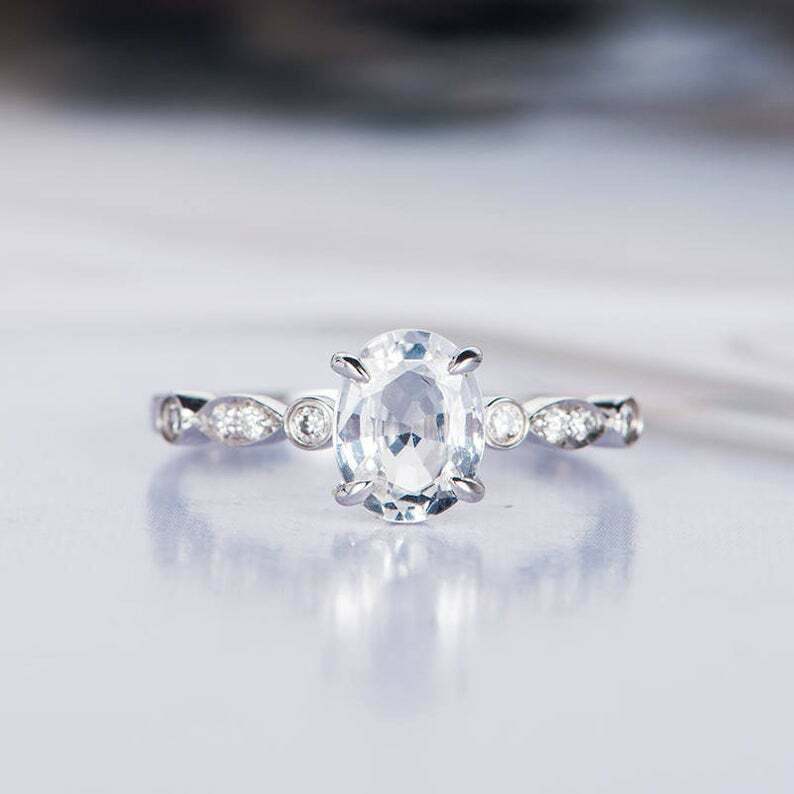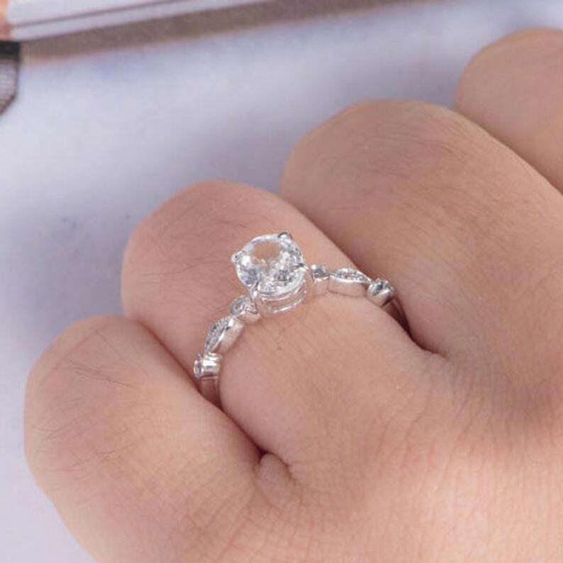 2.2ct Oval Cut VVS1D Diamond Round Accents Engagement Ring 14k White Gold Finish