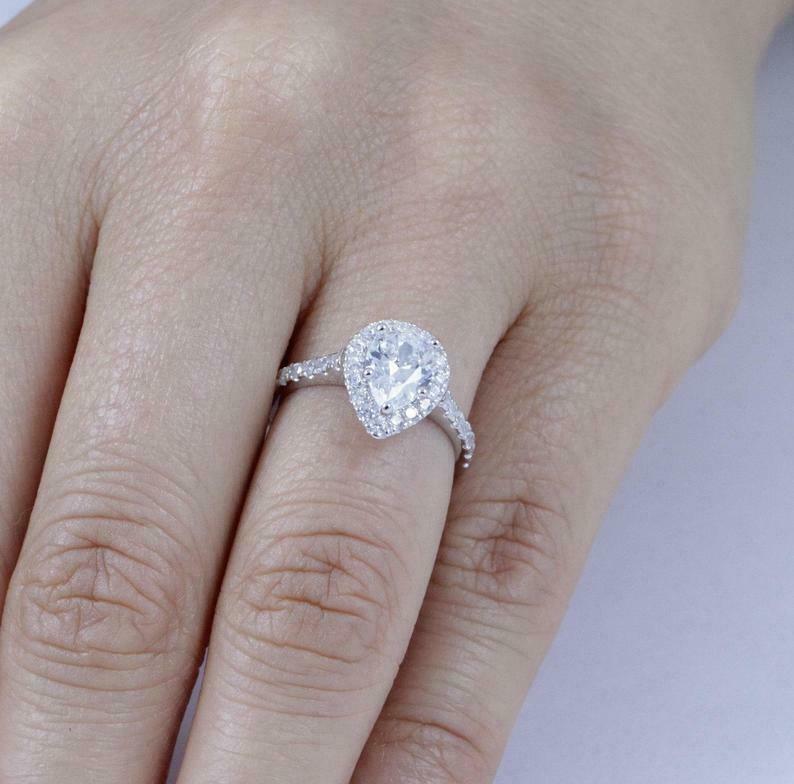 2.2ct Pear Cut Diamond Engagement Ring Halo 14k WhiteGold Over with Round Accent