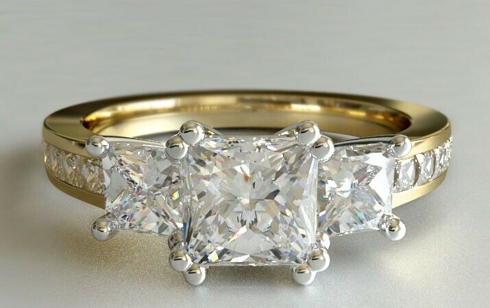 2.2ct Princess Cut Diamond Engagement Ring Trilogy 14k Yellow Gold Finish