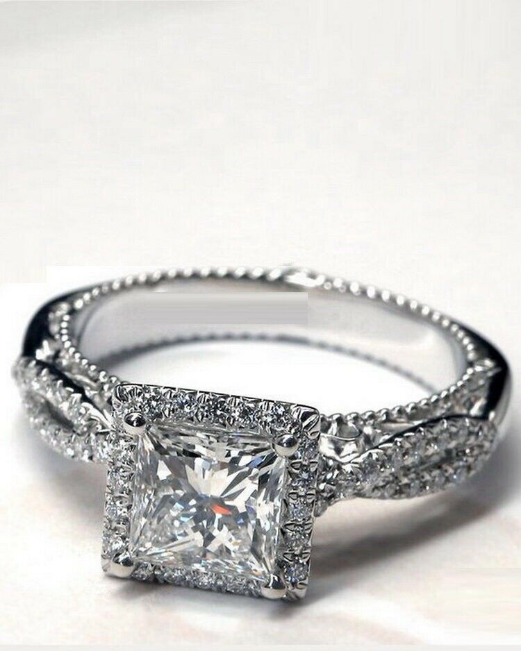 2.2ct Princess Cut Diamond Milgrain Vintage Engagement Ring 14k White Gold Over