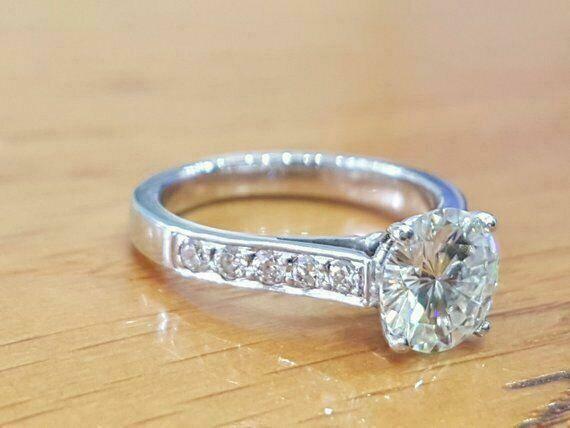 2.2ct Round Cut Diamond Accent Solitaire Engagement Ring 14k White Gold Finish