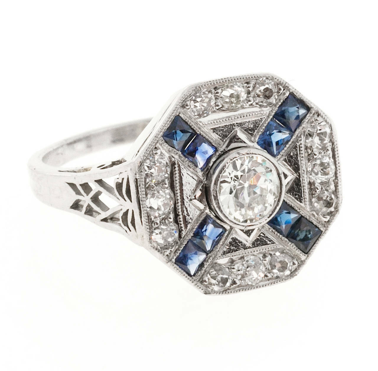 2.2ct Round Cut Diamond Engagement Ring Art Deco Milgrain 14k White Gold Finish