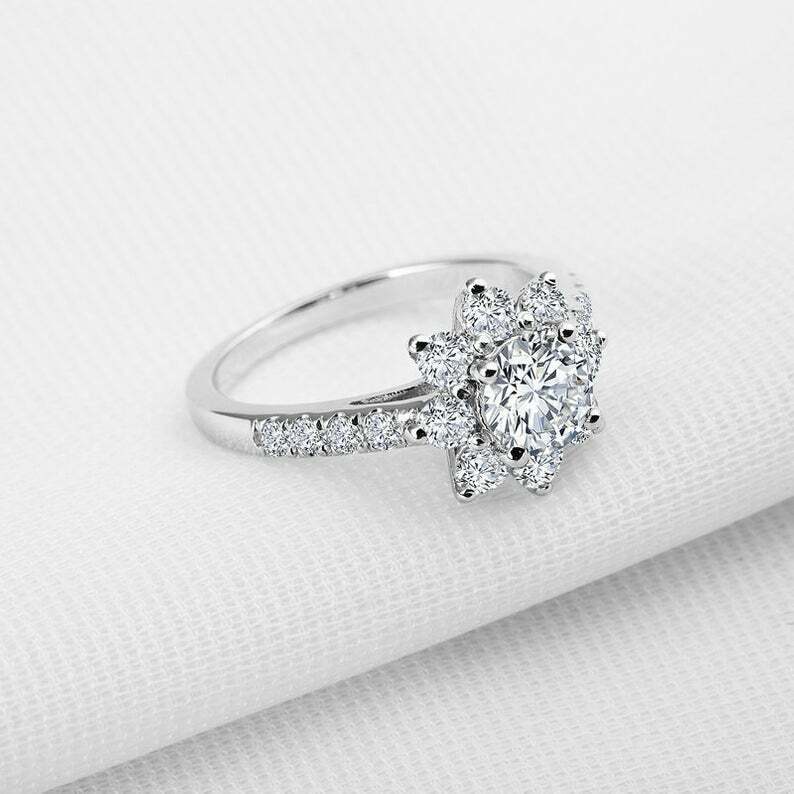 2.2ct Round Cut Diamond Engagement Ring Floral Solitaire with Accent 14k White Gold Finish