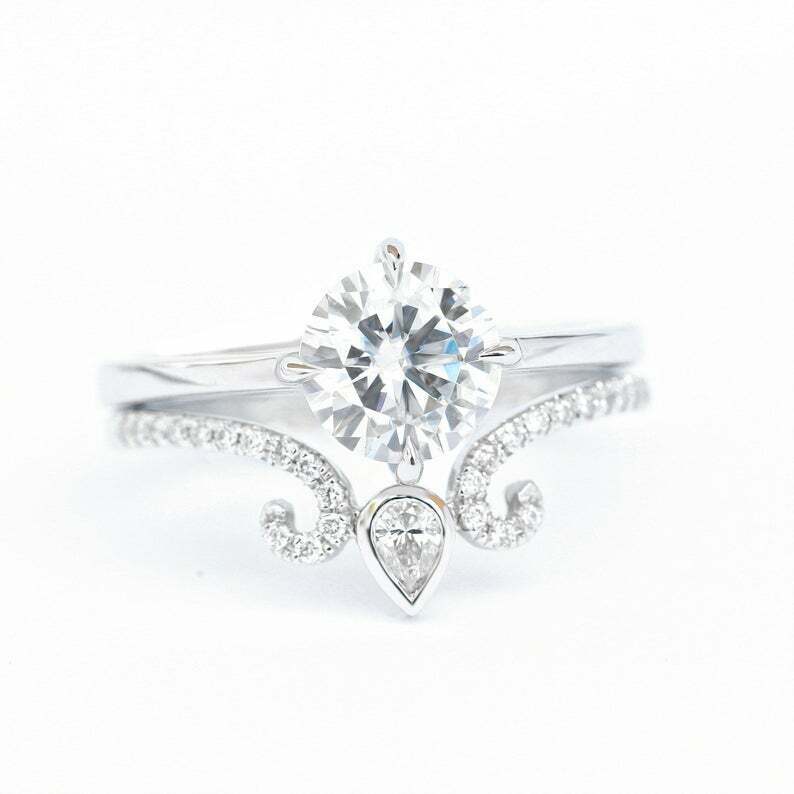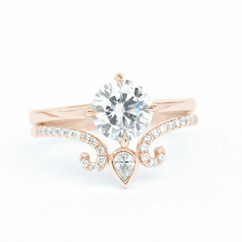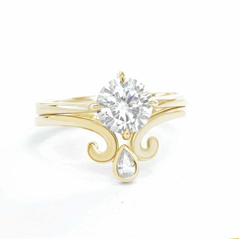 2.2ct Round Cut Diamond Engagement Ring Stylish Trio Set 14k Yellow Gold Finish