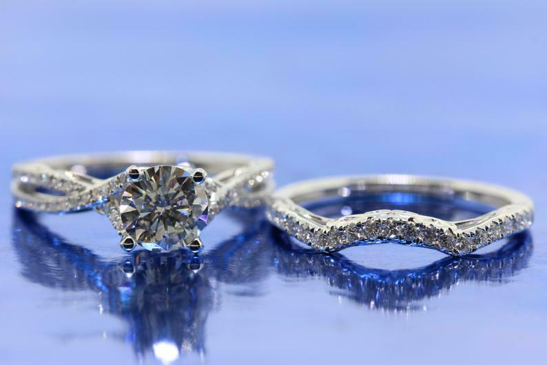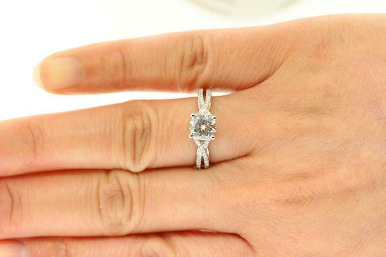 2.2ct Round Cut Diamond Engagement Ring Twisted Bridal Set 14k White Gold Finish