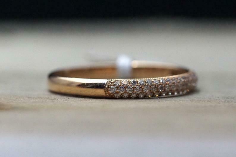2.2ct Round Cut Diamond Wedding Band 14k Rose Gold Finish Three Row Pave Set