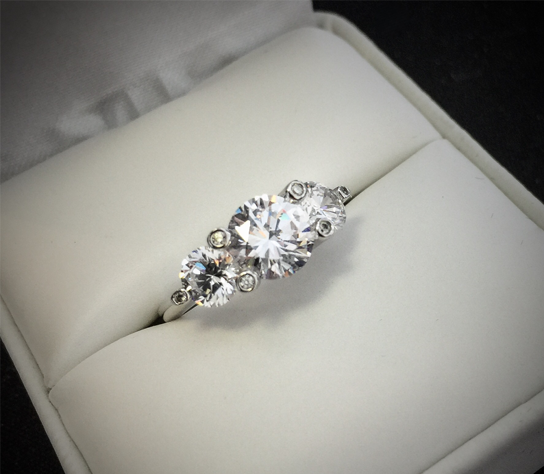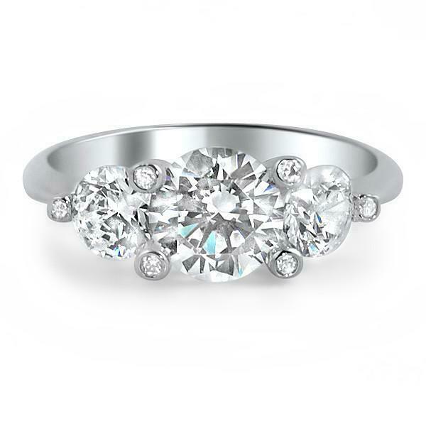 2.2ct Round Cut VVS1 Diamond Engagement Ring Trilogy Fancy 14k White Gold Finish